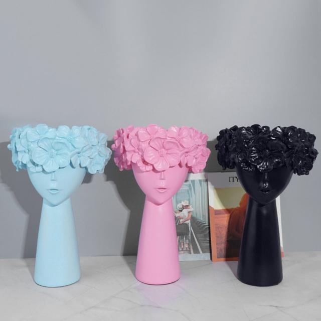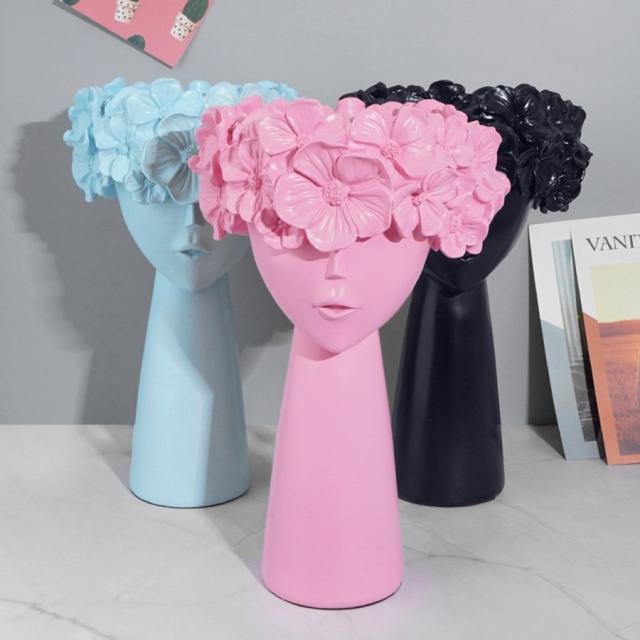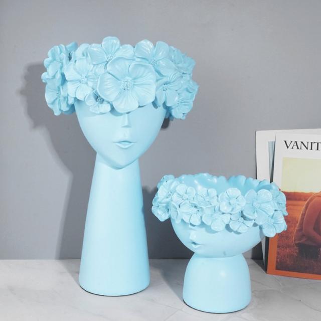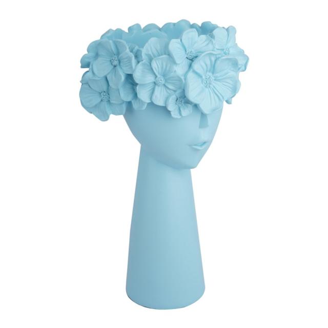 シックな女の子の花瓶プランターサボテンハーブポット樹脂デスクトップ彫刻ブルー