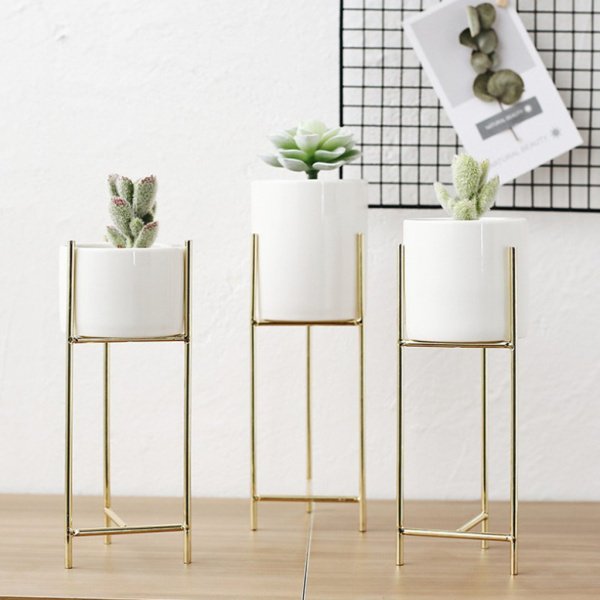 ホームオフィスの装飾フラワーポットゴールデンLの北欧セラミック花瓶セット