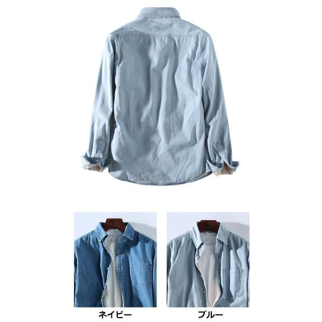 ダンガリーシャツ メンズ ダンガリー長袖シャツ 裏起毛 開襟シャツ ダンガリー カジュアルシャツ 長袖 春着 父の日 2019 新春