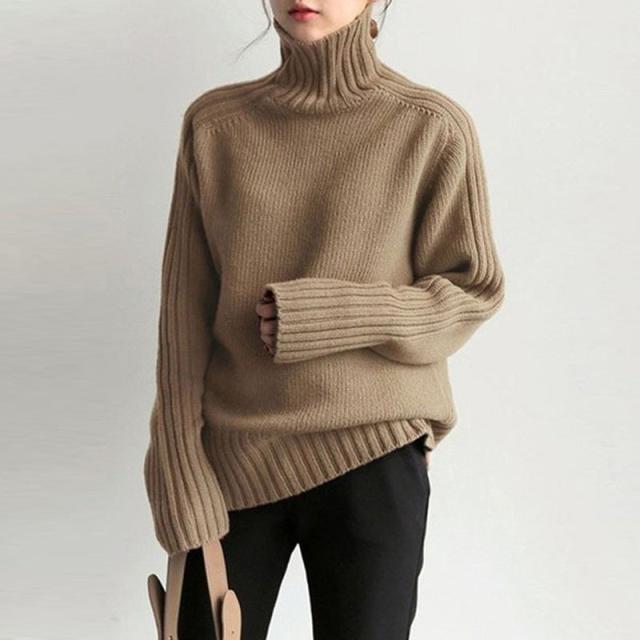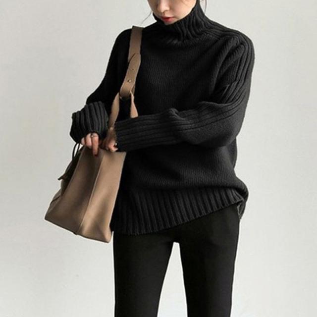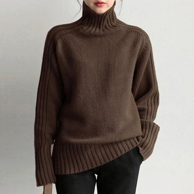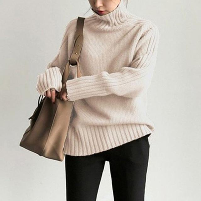 ハイネックニット リブ切り替え リブニット レディース ハイネック ニットトップス ニット にっと 秋 冬 厚手 おしゃれ 通勤 OL