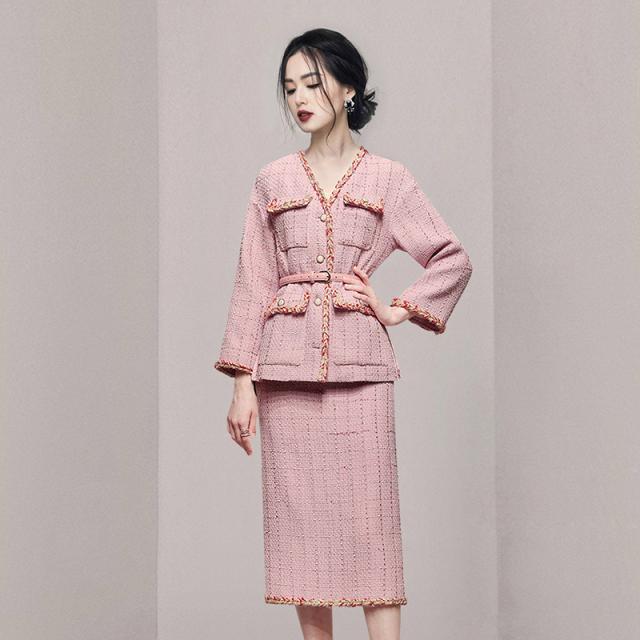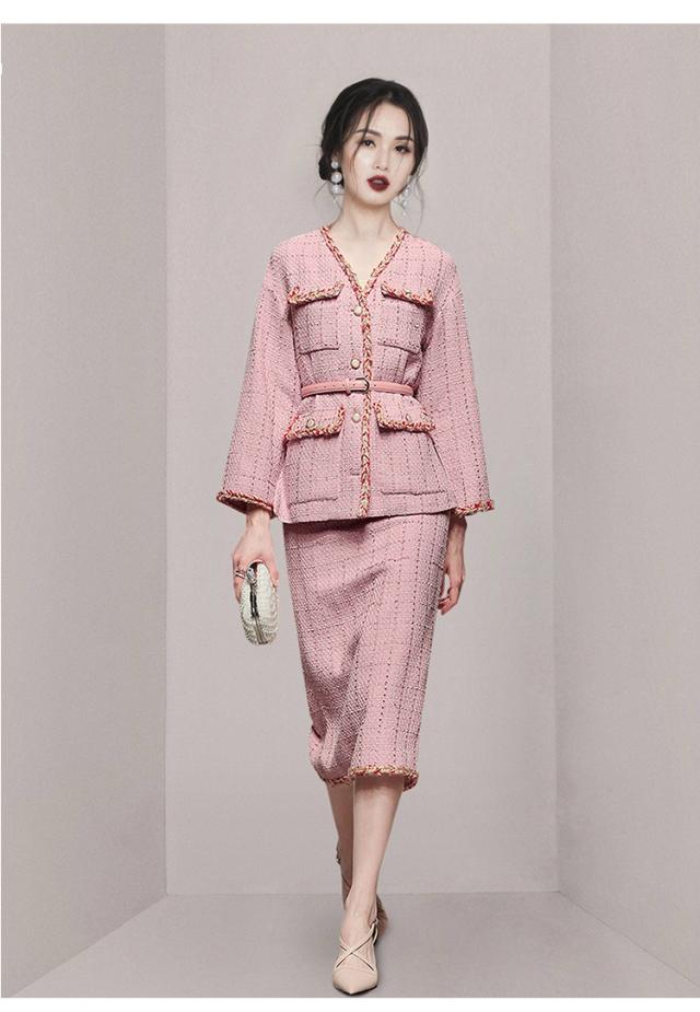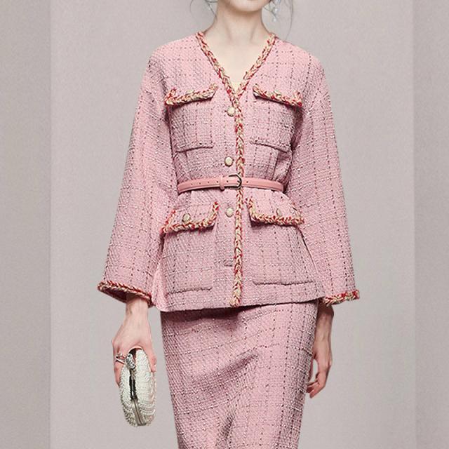 スカートスーツ レディース ジャケット セットアップ 大人エレガント タイトスカート Vネック ツィード調 ピンク ミセス おしゃれ 美人 ナチュラル