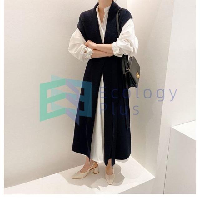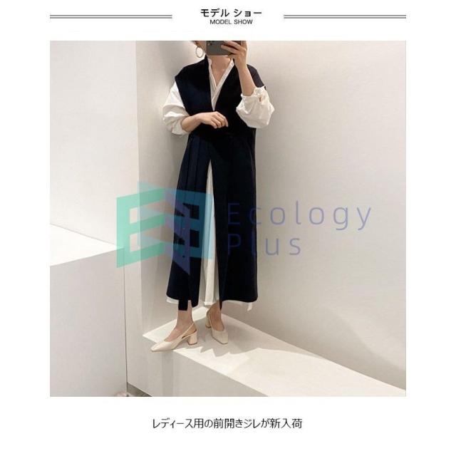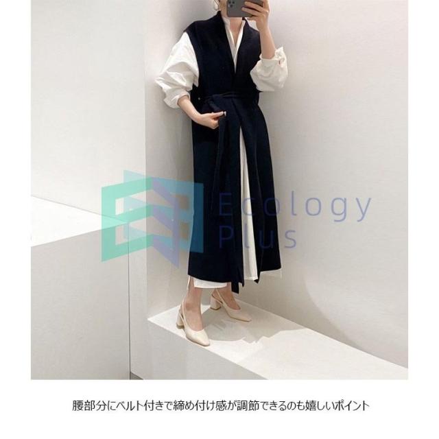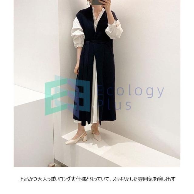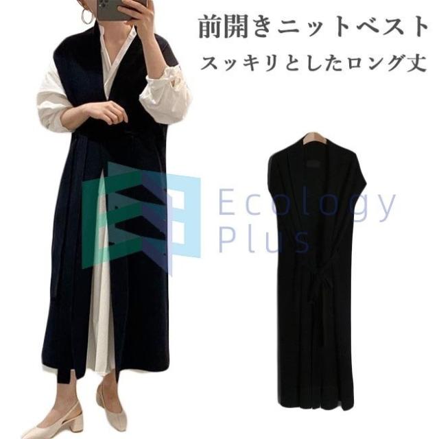 ロングジレ ニット ジレベスト レディース ロングベスト 前開き ニットベスト ベスト ロング丈 ジレ お洒落 チョッキ 秋 春 アウター 通勤