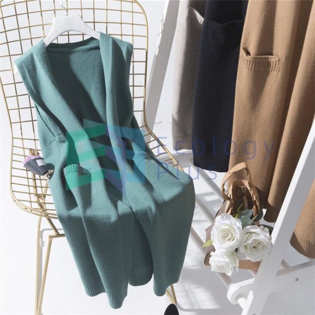 ニットベスト レディース ノースリーブ ロングジレ トレンチベスト ジレンチ トップス ロングベスト ノースリーブ ジレ 秋 冬 大きいサイズ 前開きベストジレ