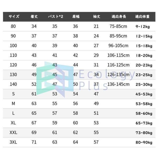 | サイズ | キッズ80 キッズ90 キッズ100 キッズ110 キッズ120 キッズ130 キッズ140 大人S 大人M 大人L 大人XL 大人2XL 大人3XL |
