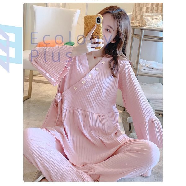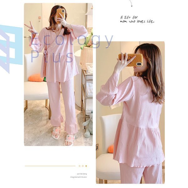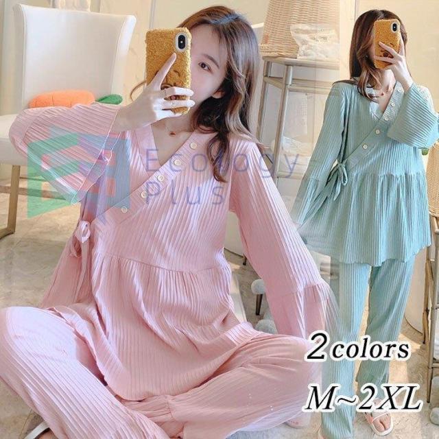 パジャマ レディース ルームウェア 秋冬 綿 長袖 上下セット 可愛い ロングパンツ 授乳服 マタニティ服 ゆったり 寝巻き 部屋着 寝間着 入院 産前 産後