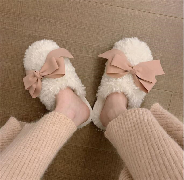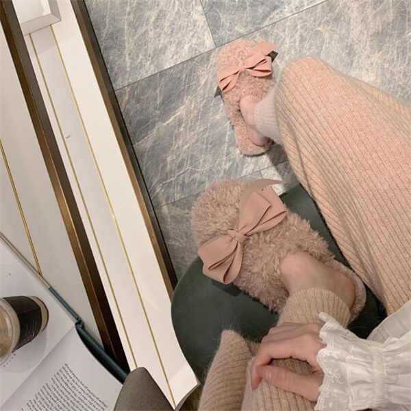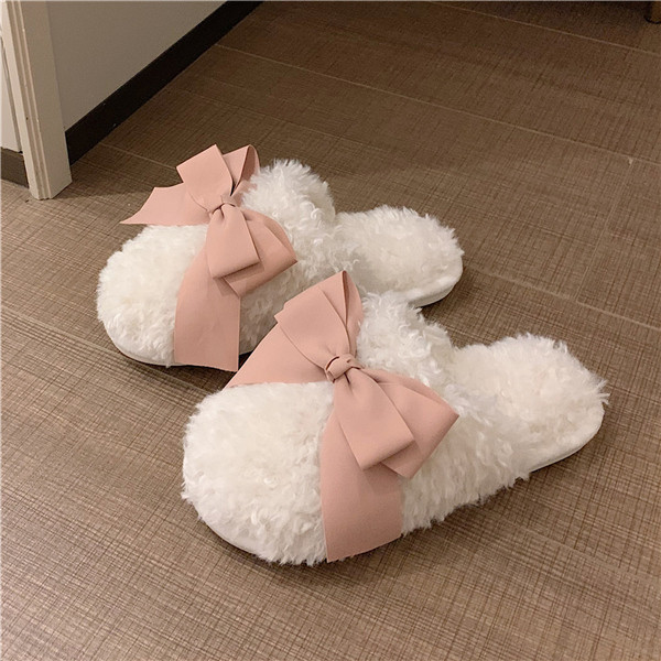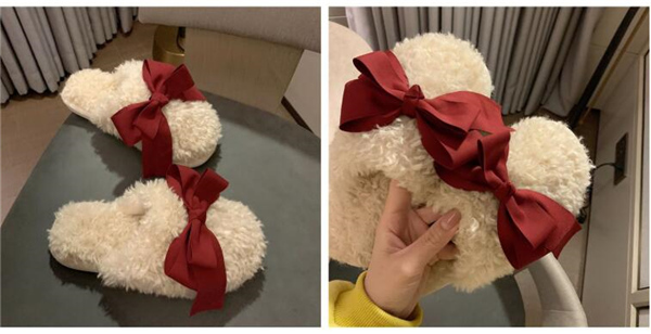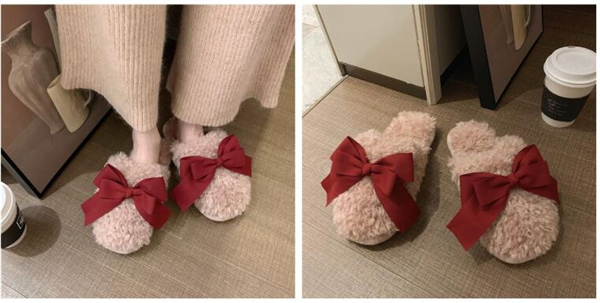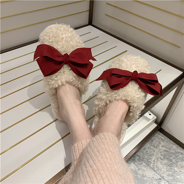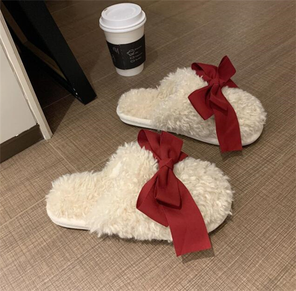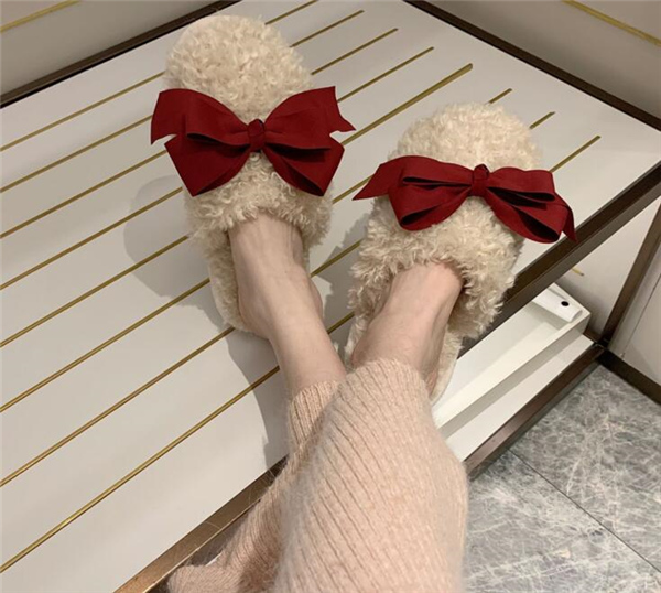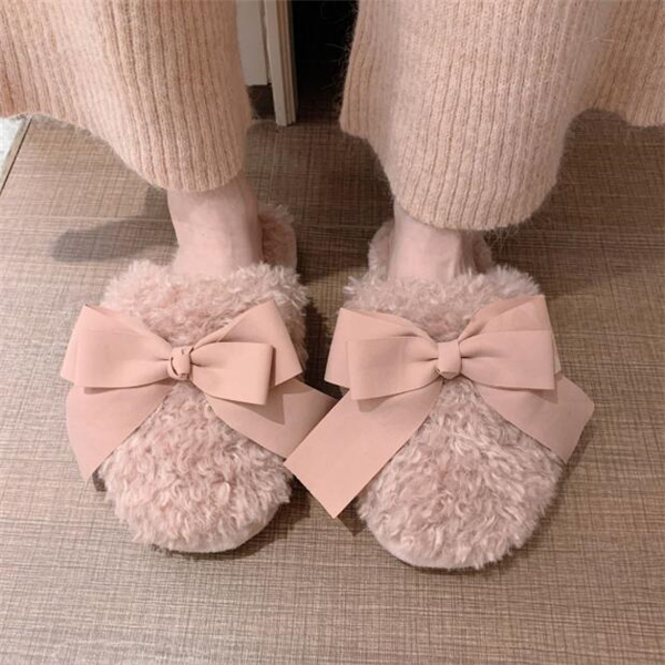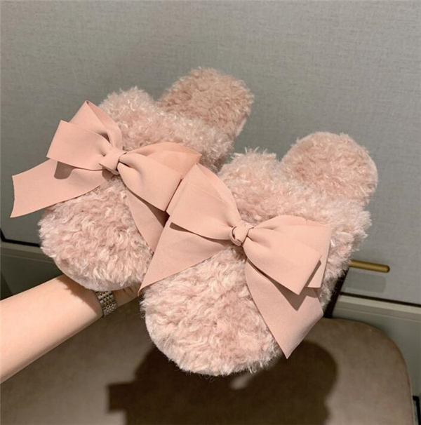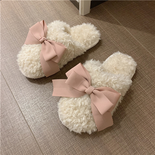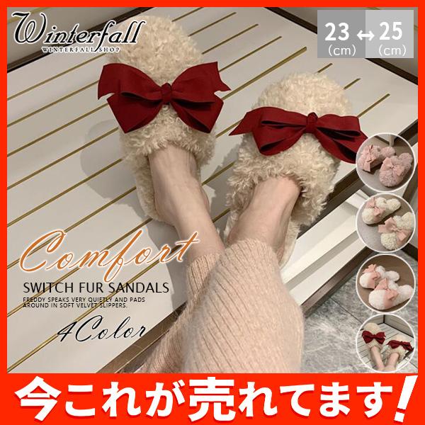 秋冬新作 ファーサンダル リボン もこもこスリッパ レディース ふわふわ 防寒 あったか 室内用 ルームシューズ 靴 寒くない 部屋着 可愛い