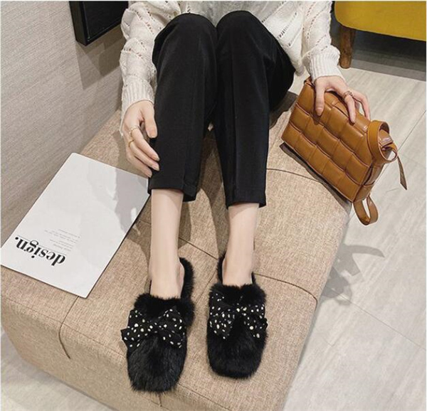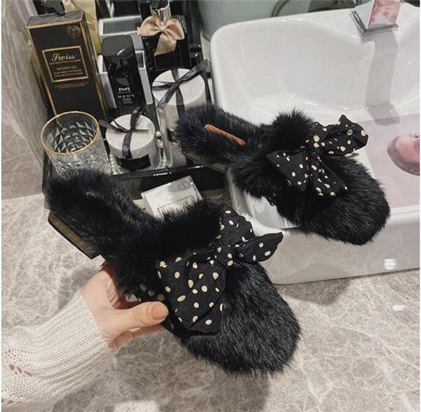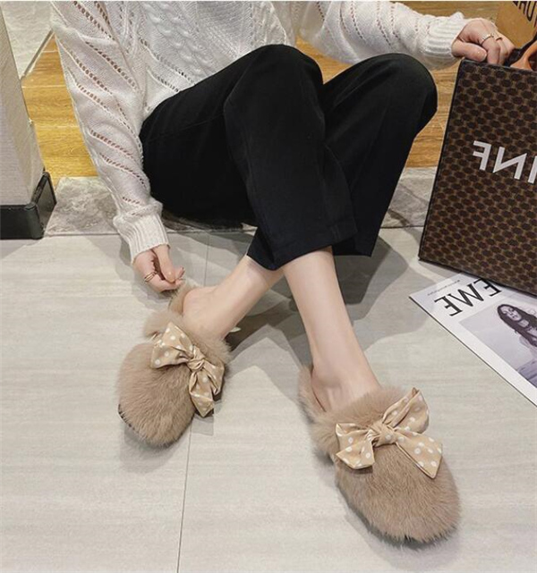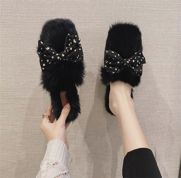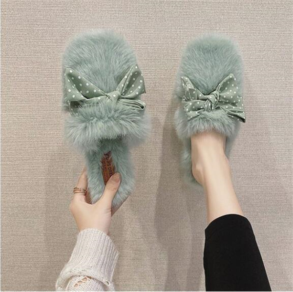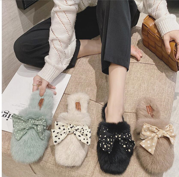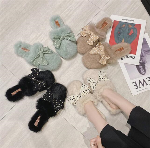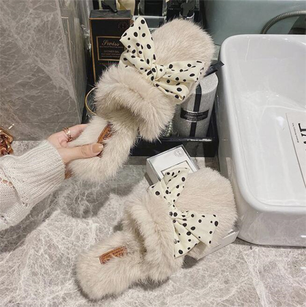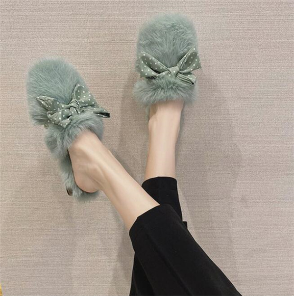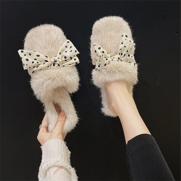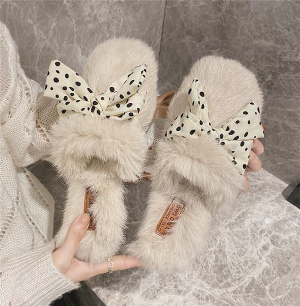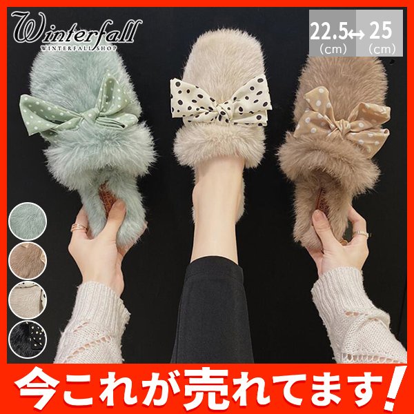 秋冬新作 ファーサンダル リボン もこもこスリッパ レディース ふわふわ 防寒 あったか 室内用 ルームシューズ 靴 寒くない 部屋着 可愛い