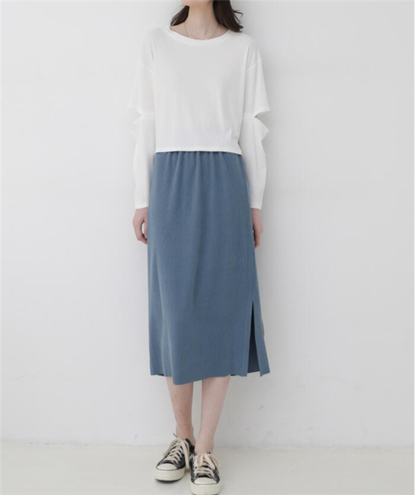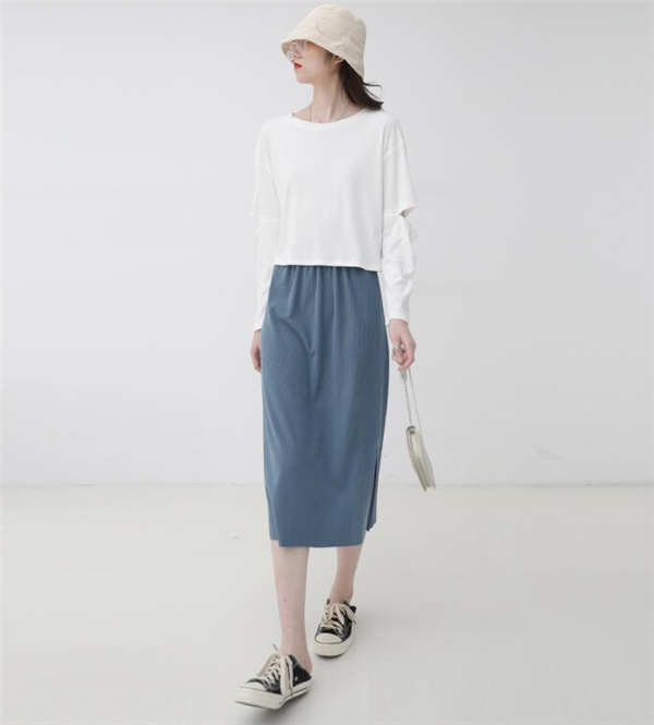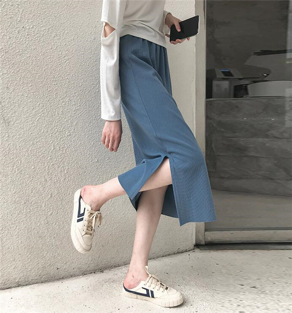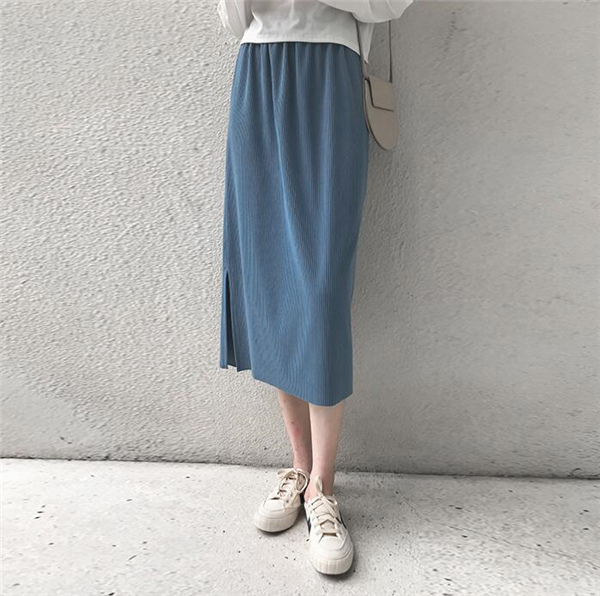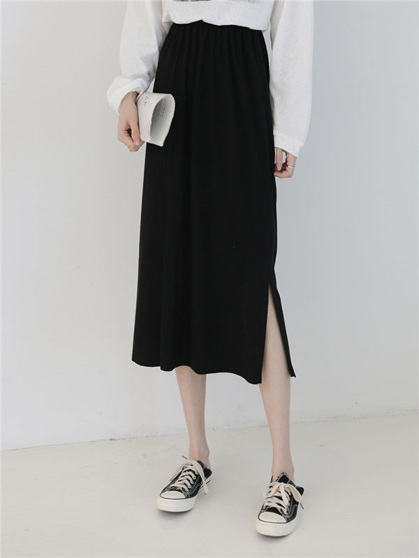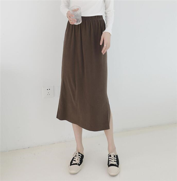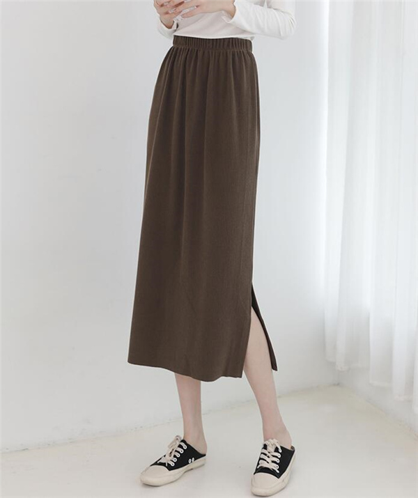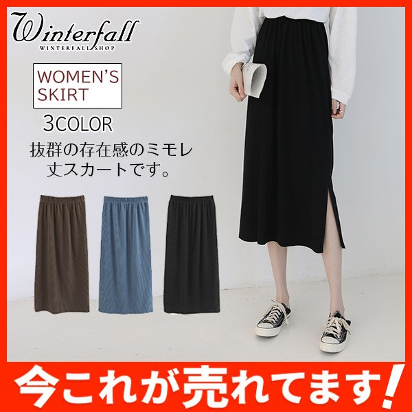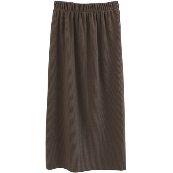 レディースマキシスカート ロング丈 ニットスカート 体カバー エレガント 無地 細身 ゴムウェスト ナロースカート スリップ入り