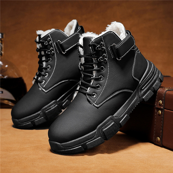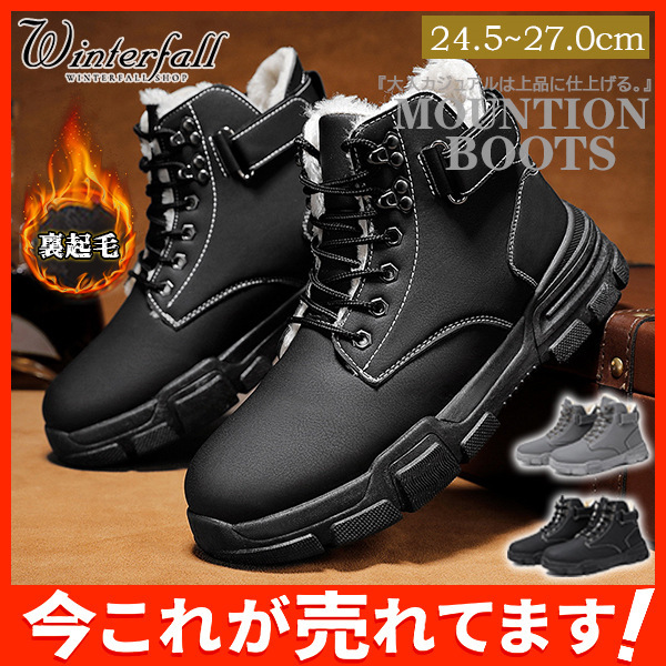 ワークブーツ ショートブーツ メンズ 合成革靴 プレーントゥ カジュアルブーツ シークレット モックトゥブーツ 防寒靴 アウトレット 裹起毛 滑り防止