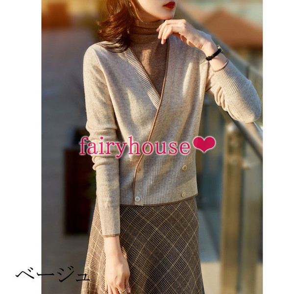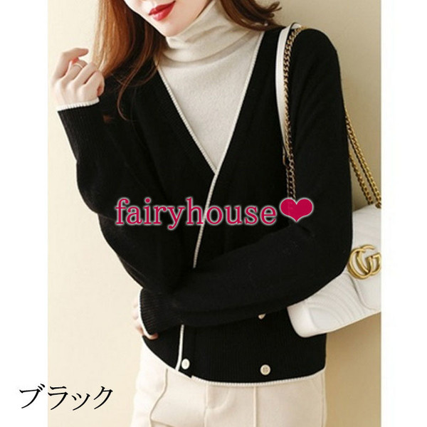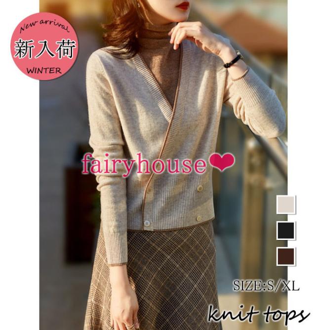 ニットセーター レディース 秋冬新作 長袖ニットトップス 配色 ハイネック ゆったりニットソー ショット丈セーター オシャレ韓国風 着痩せ カジュアル30代