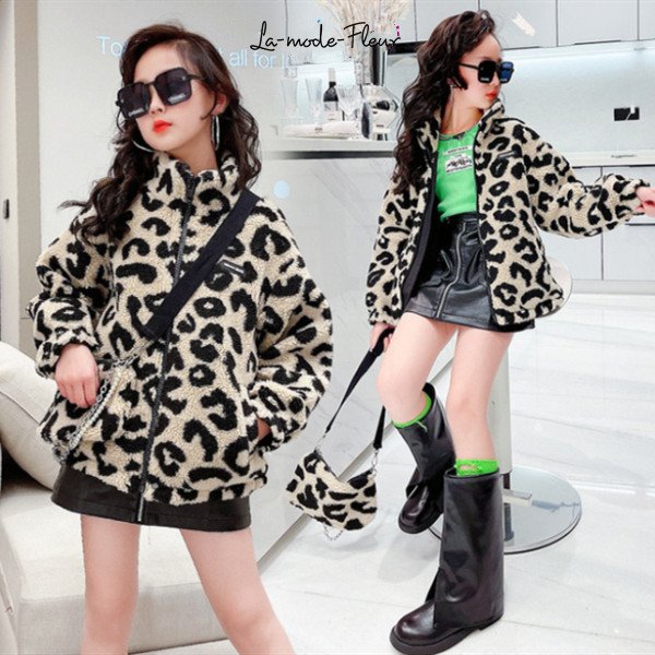 韓国子供服 アウター ファッション ヒョウ柄 モコモコ 女の子 おしゃれ 冬服 コート 防寒抜群 厚手 暖かい キッズ ガールズ アウター お出かけ 通学着 普段着