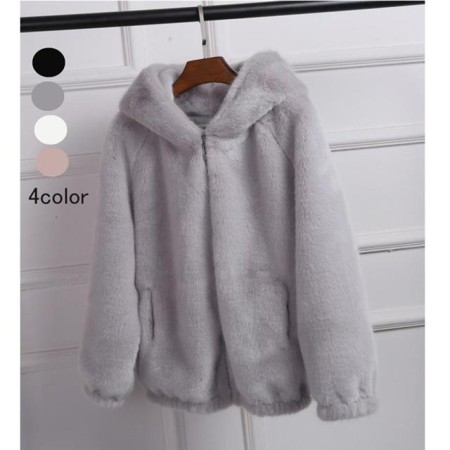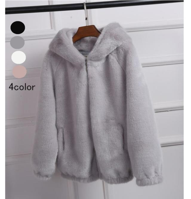 毛皮コート レディース 冬服 アンゴラコート もこもこ 暖かい フェイクファーコート ショート丈ジャケット 韓国風 アウター 上品 大人 着痩せ フード付き