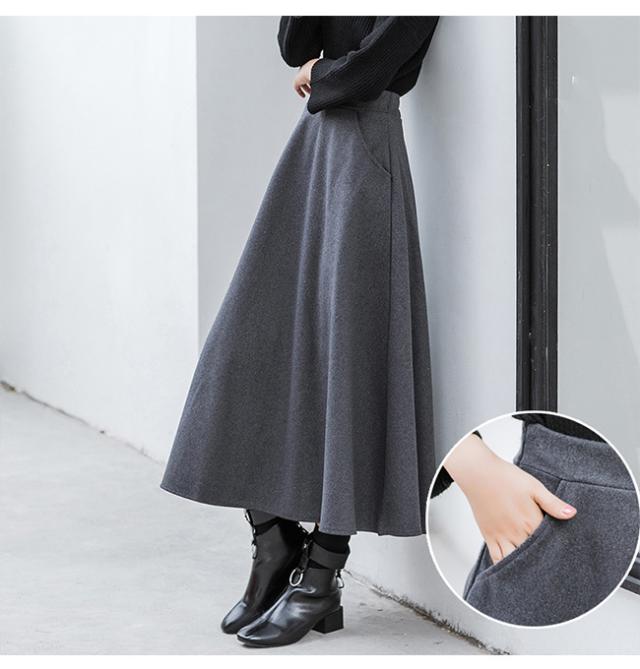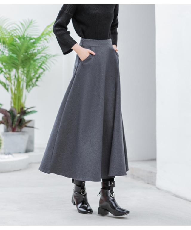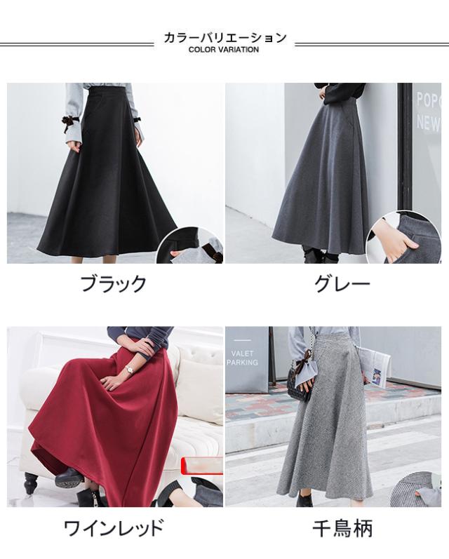 厚手 スカート Aライン 冬 レディース ロングスカート マキシ丈 85cm 通勤 無地 千鳥柄 Aラインスカート 秋 30代 40代 50代 冬スカート