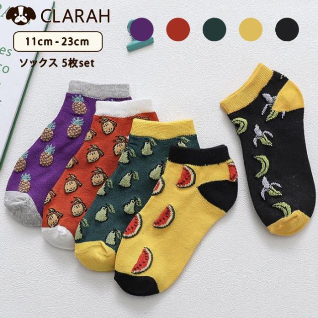 キッズ 靴下 5足セット フルーツ 男の子 ソックス くつ下 スニーカーソックス ネコポス