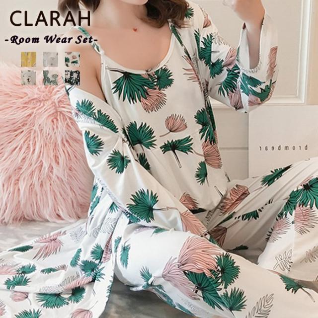 ルームウェア 3点セット パジャマ レディース 上下セット 部屋着 インスタ映え 寝巻き パジャマセット 韓国 長袖 キャミソール 春 夏 秋 ネコポス
