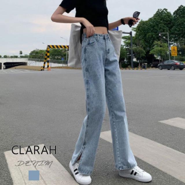レディース デニムパンツ 裾スリット ゆったり ハイウエスト ジーパン ジーンズ ボトムス トレンド 大きめサイズ 韓国レディース ネコポス