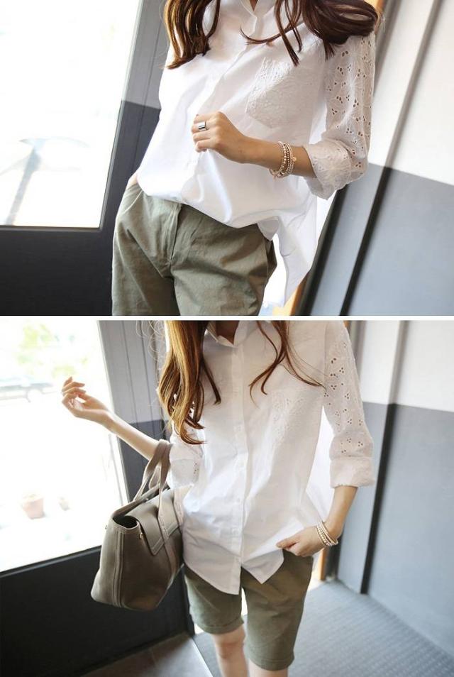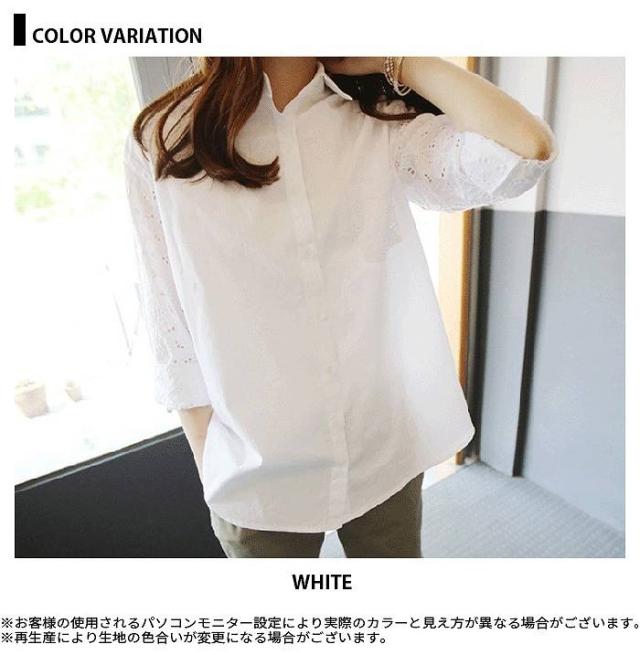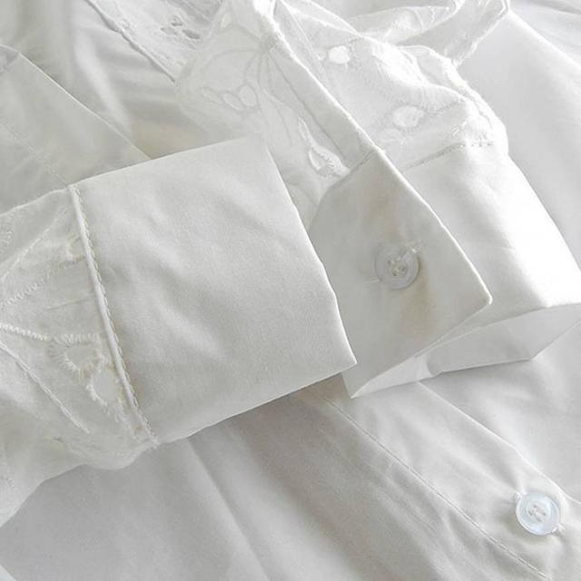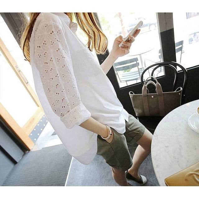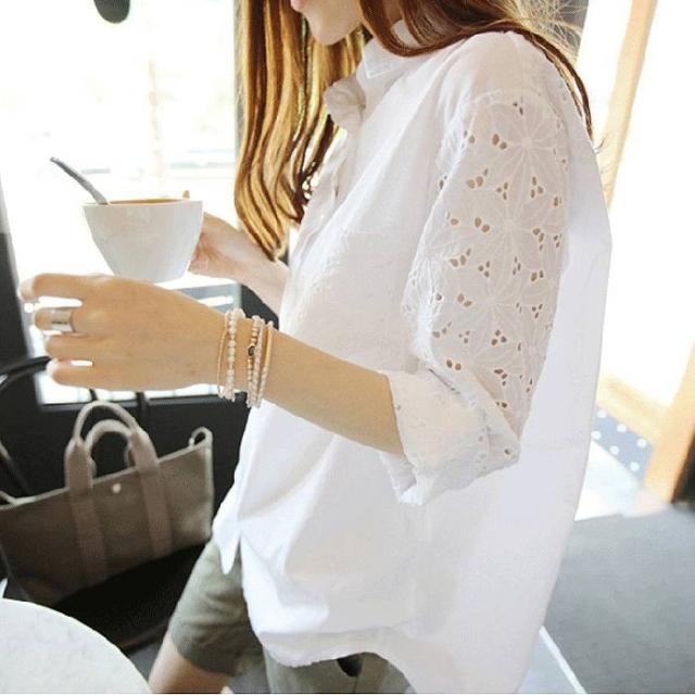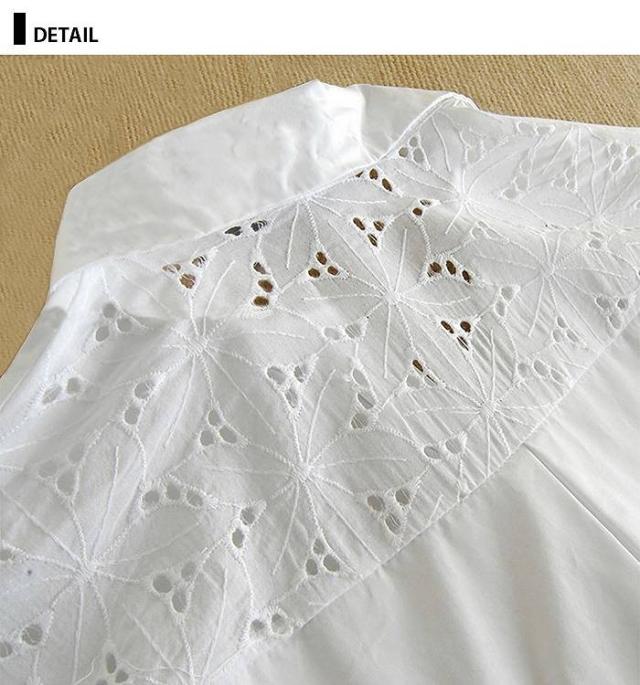 シャツ レディース 長袖 肩レース ブラウス チュニック トップス カットソー レース ホワイト 白 春服 夏服 新作 ネコポス