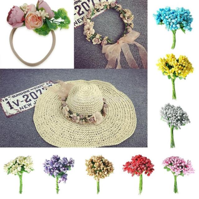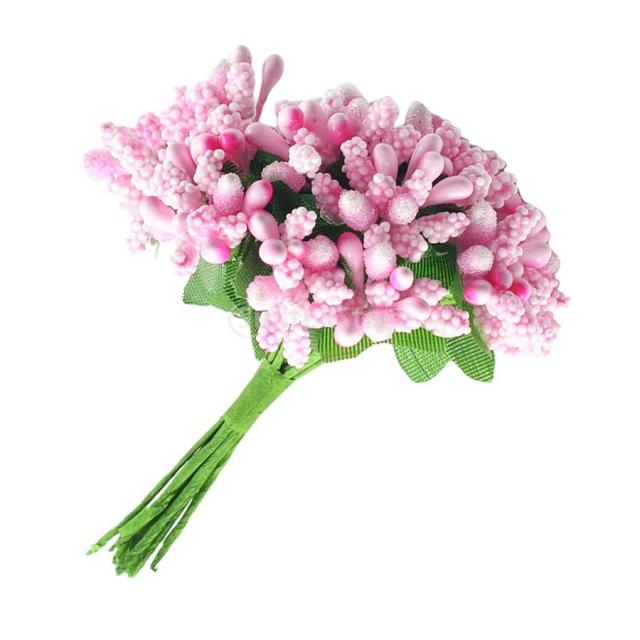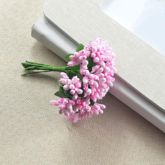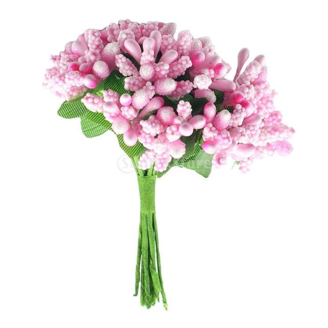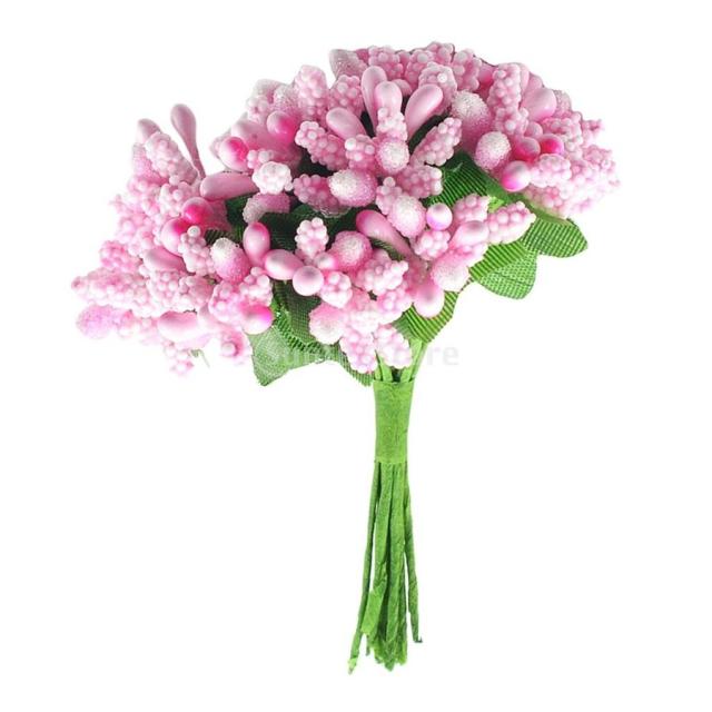 結婚式 人工花 雄しべ/雌しべ(12pcs) 花束 ヘアアクセサリー 写真プロップ- ピンク