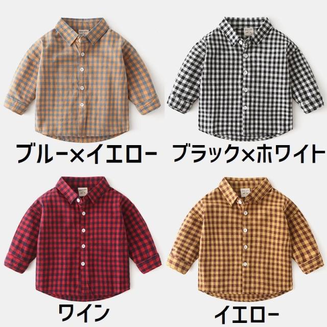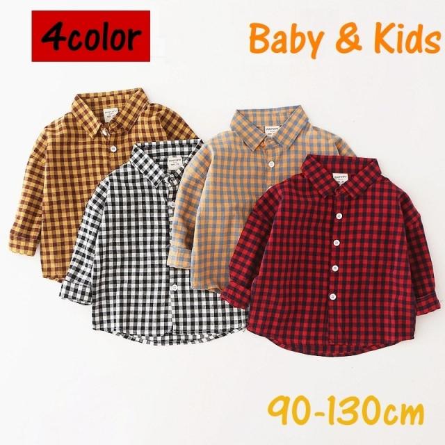 ネルシャツ 長袖 子供服 トップス キッズ ベビー 男の子 女の子 前ボタン 襟付き スタンダードカラー ギンガムチェック柄 秋 カジュアル おしゃれ