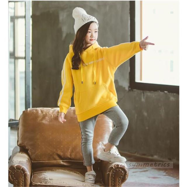 パーカー 女の子 キッズパーカー 長袖 ロング丈 トップス 無地 防寒 パーカー カジュアル スウェット春秋冬 韓国子供服