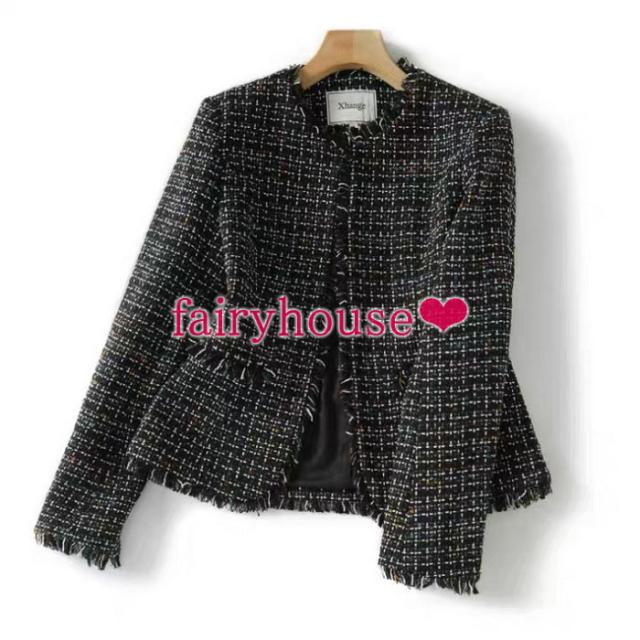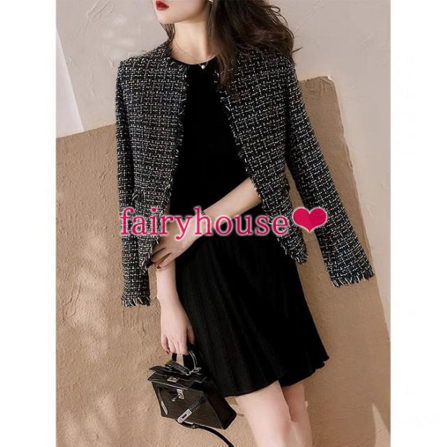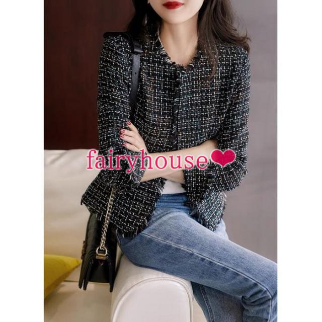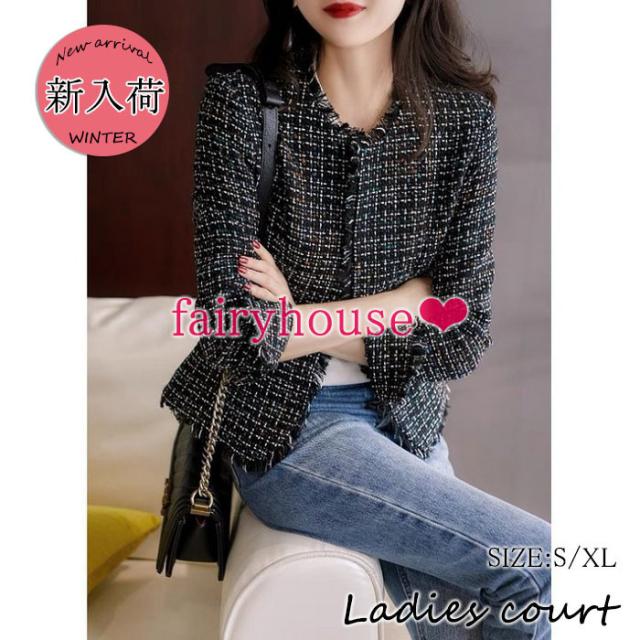 ブレザージャケット レディース 秋新作 長袖ツイードブレザー ノーカラージャケット カーディガン チェック柄 40代アウター 韓国風 オシャレ大人 通勤 着痩せ
