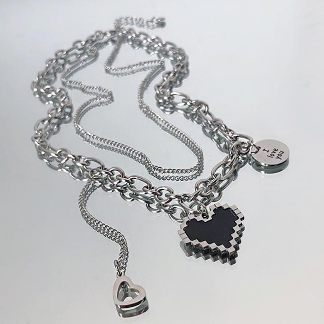 メタルハート 2連ネックレス レディース