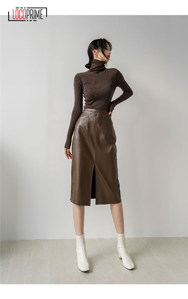 レディース レザースカート タイトスカート ロングスカート ミディアム丈 スリット 秋冬 合成皮革 フェイクレザー 着痩せ ハイウエスト お出かけ