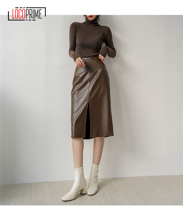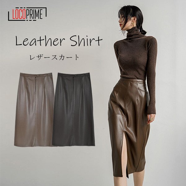 レディース レザースカート タイトスカート ロングスカート ミディアム丈 スリット 秋冬 合成皮革 フェイクレザー 着痩せ ハイウエスト お出かけ