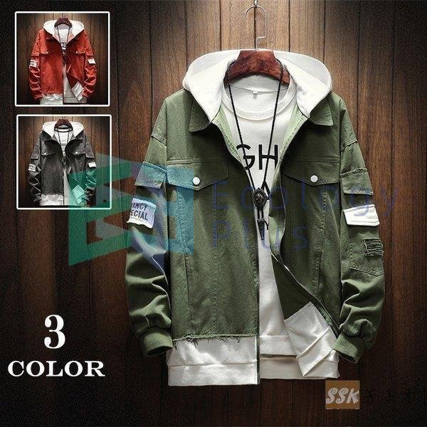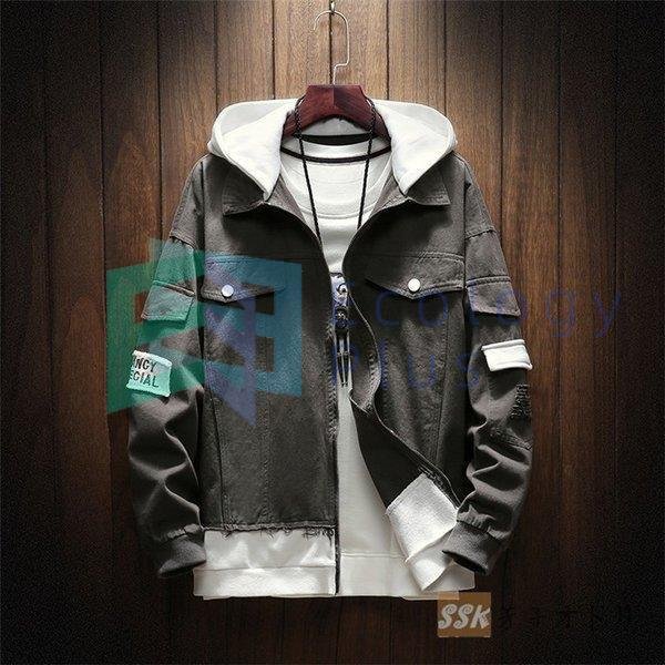 ジージャン デニムジャケット メンズ ミリタリー ジャケット ダメージ加工 Gジャン カジュアル フード付き ジャパンー お兄系