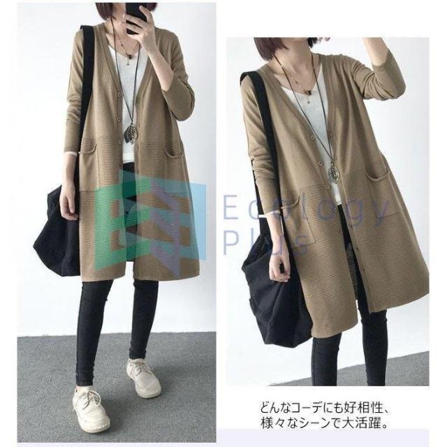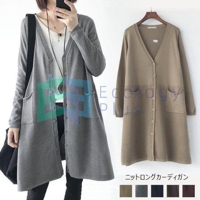 ニットロングカーディガン レディース リブ編み ストライプ柄 長袖 アウター トップス オシャレ 秋 冬 春 2020秋冬新作