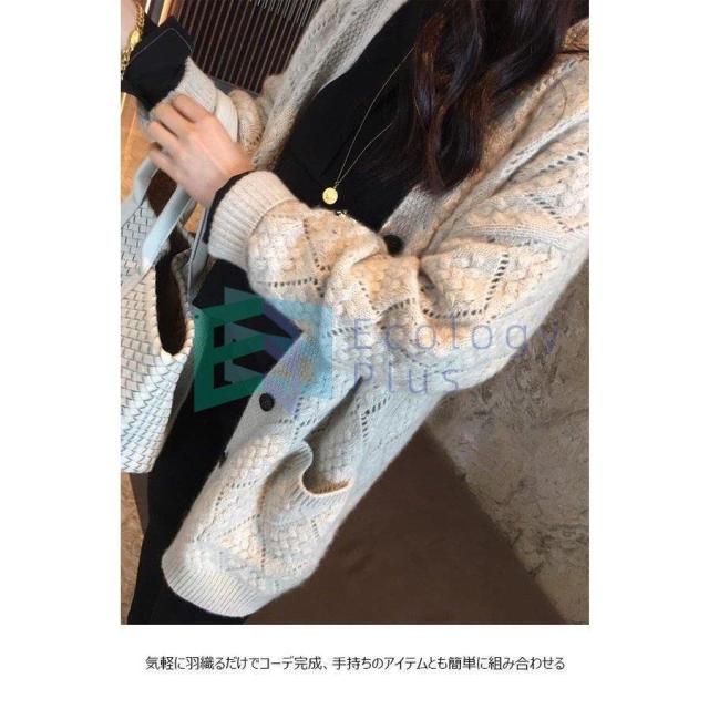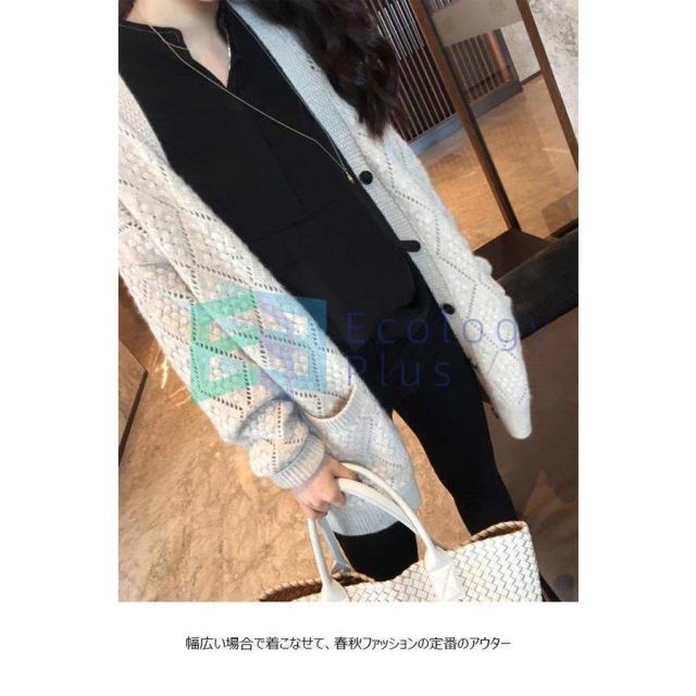 カーディガン Vネック レディース ニットカーディガン ヒップ丈 ボタンカーディガン 秋 透かし編み コーディガン ニットコーディガン 春