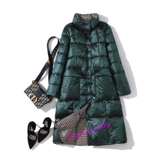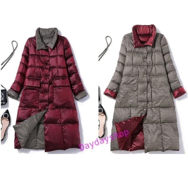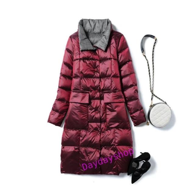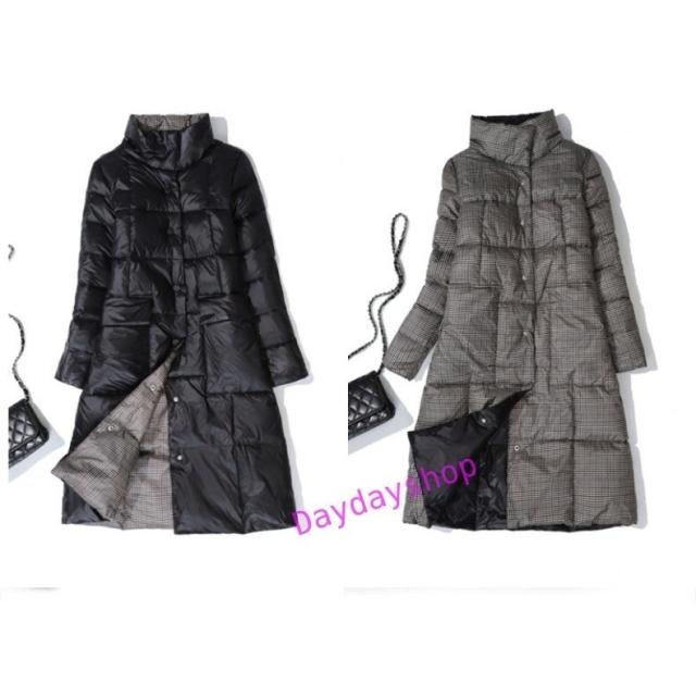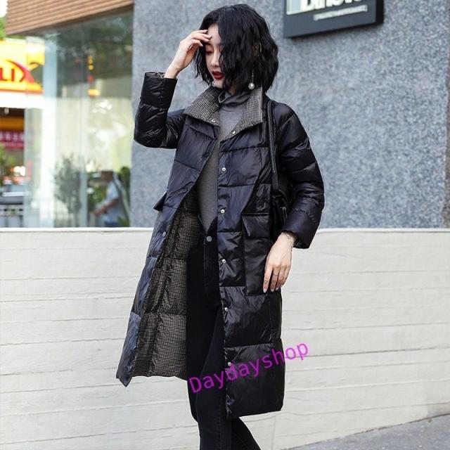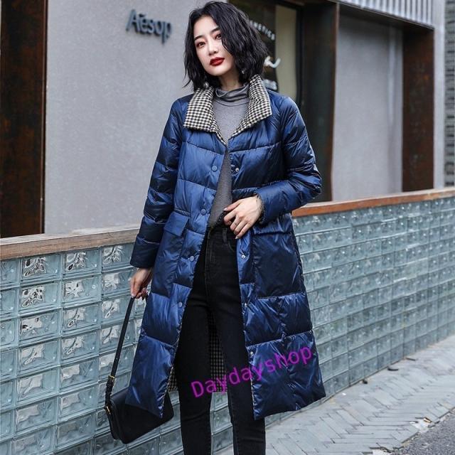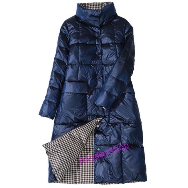 リバーシブル ダウンコート レディース ダウンジャケット ロングコート ライトダウン aライン アウター チェック 両面着 2WAY 軽量 薄手 秋冬 防寒 冬物