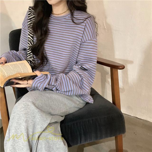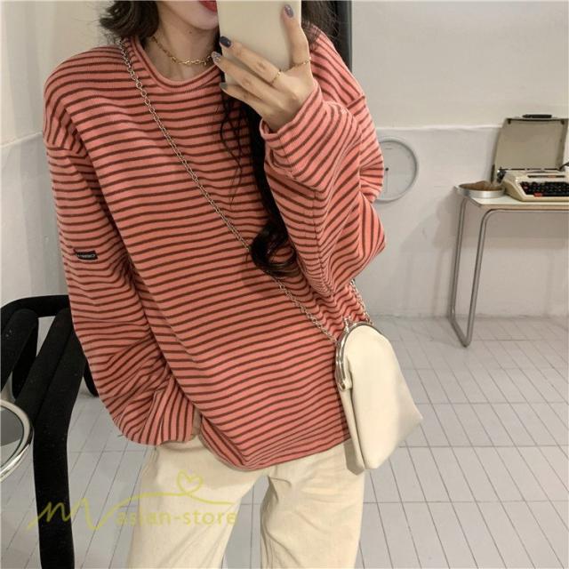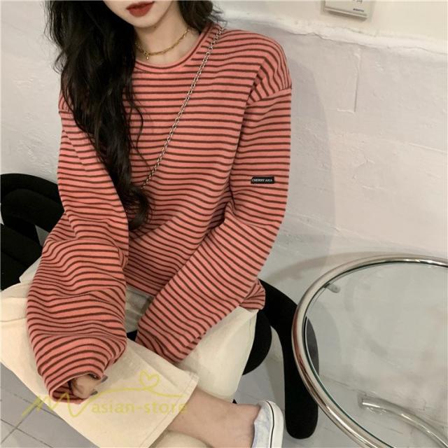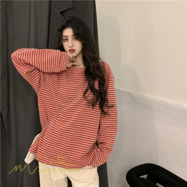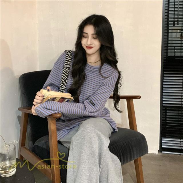 トレーナー レディース 着痩せ 長袖トレーナー トップス カットソー ボーダー おしゃれ ゆったり 長袖Tシャツ 上品 スウェット プルオーバー クルーネック 秋服