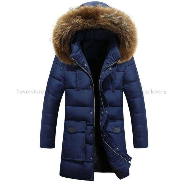 人気 ダウンジャケット メンズ ダウン コート 中綿ジャケット ロング ミディアム丈フード フェイクファー カジュアル 無地 秋冬アウター 防寒 軽量