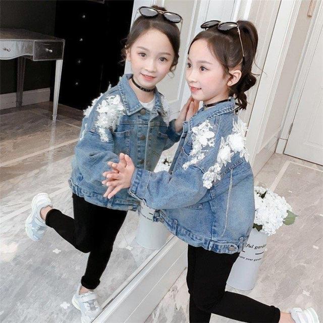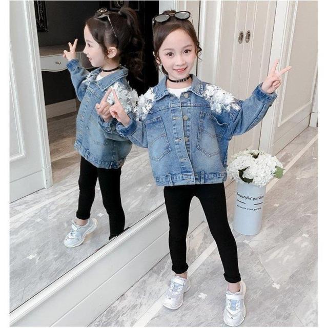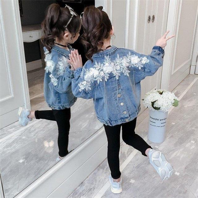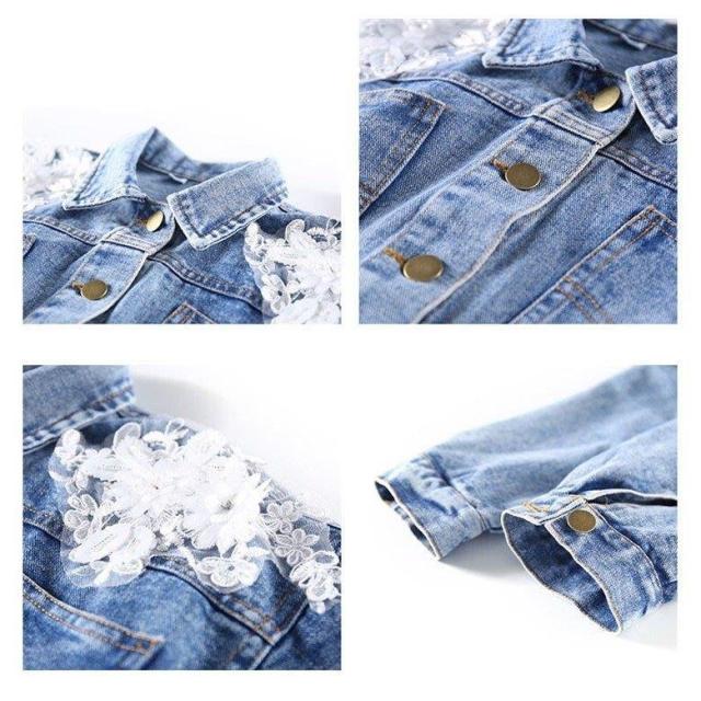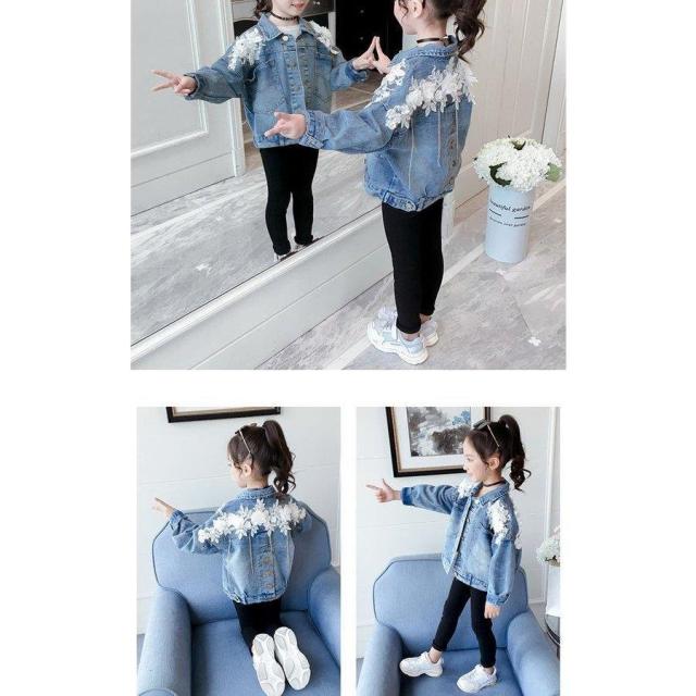 デニムジャケット キッズ デニムコート キッズ 子供服 女の子 秋 レース花 春秋 コート Gジャン ジージャン アウター ジュニア 長袖 110cm-160cm