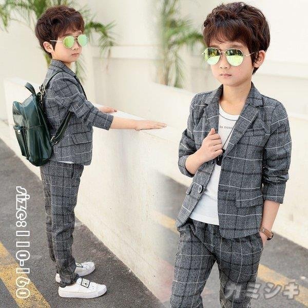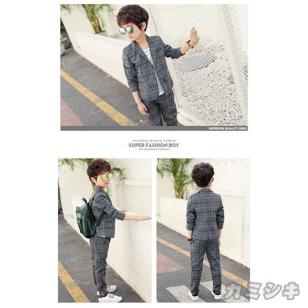 韓国子供服 スーツ コート パンツ 男の子 チェック柄 春秋 長ズボン Vネックス 長袖 セットアップ カジュアル キッズ フォーマル 可愛い きれいめ 卒園式/入学式
