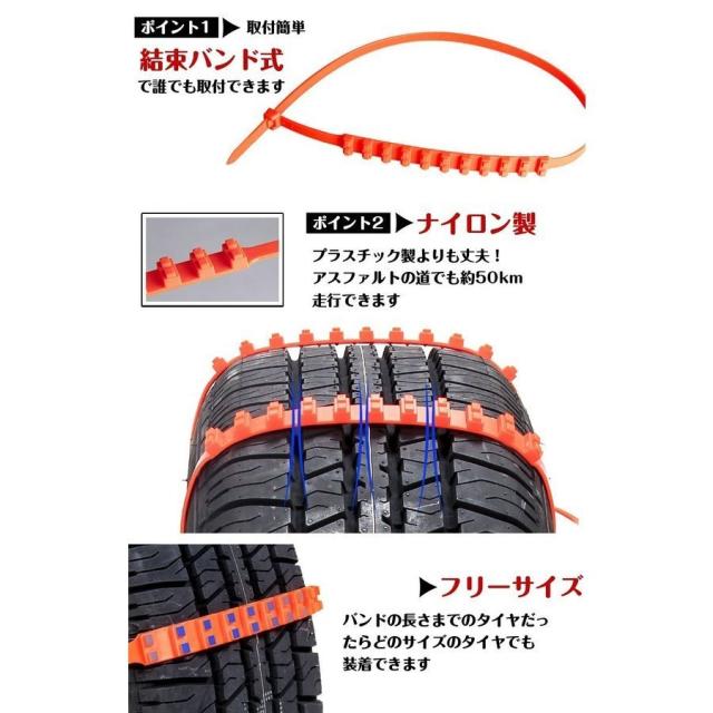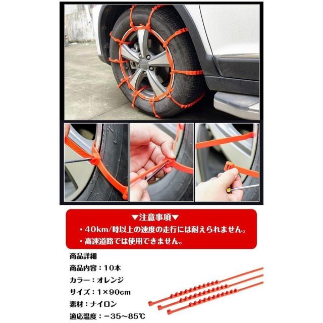 簡易型 タイヤチェーン 非金属 r14 r15 r16 10本セット スノー 滑り止め 結束バンド 車 雪道 ナイロン 凍結 スリップ 事故 ジャッキ不要 e104