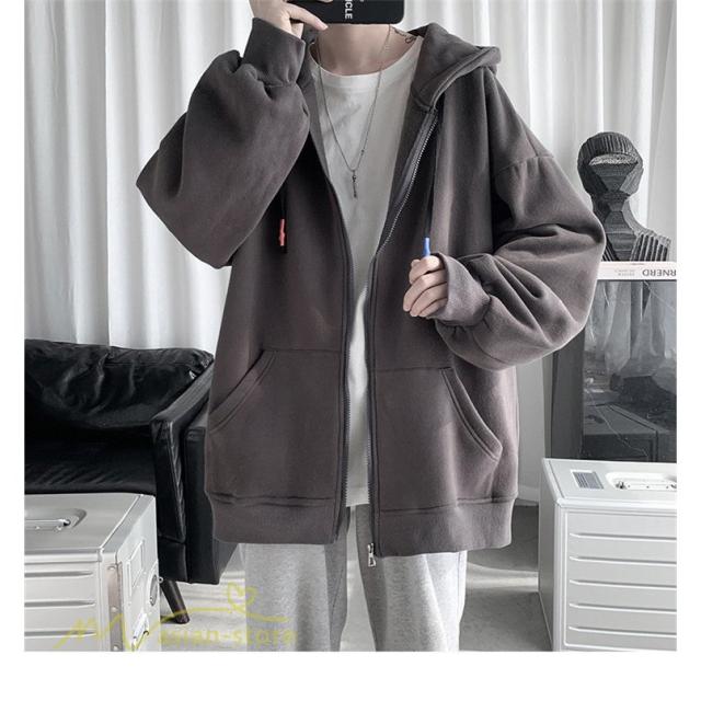 ジップアップパーカー メンズ パーカー 秋服 秋物 トップス きれいめ ロゴ 長袖 2021 秋冬 新作 前開き フード付き 秋新作 アウター ゆったり
