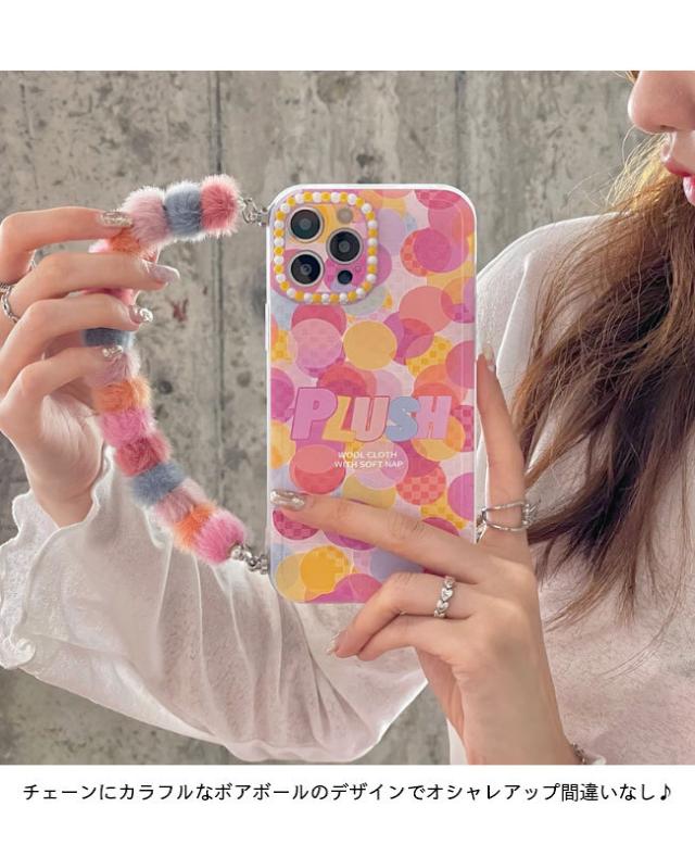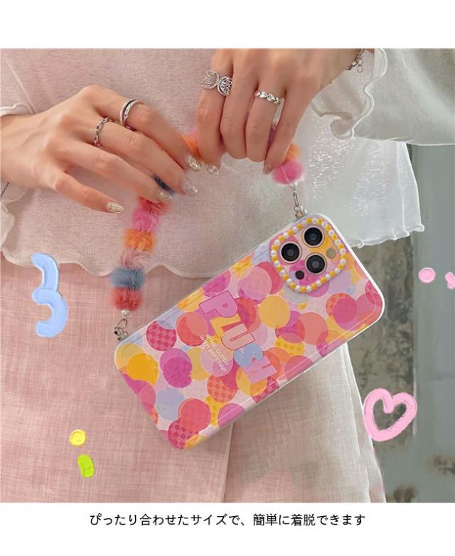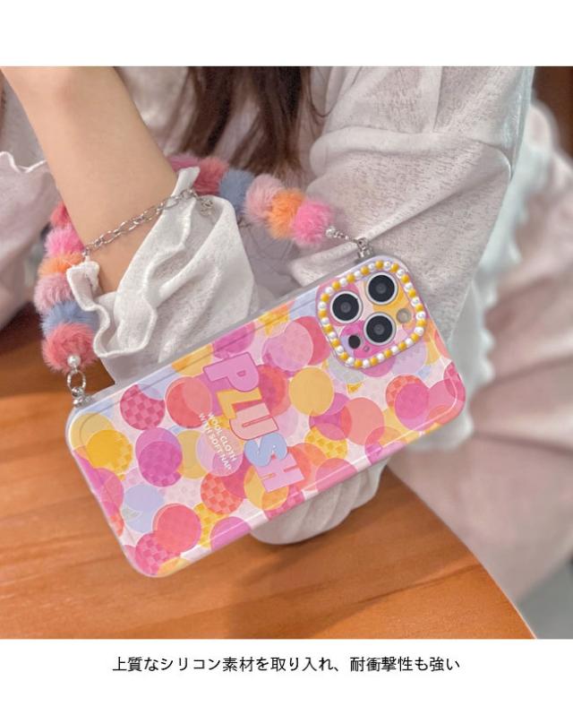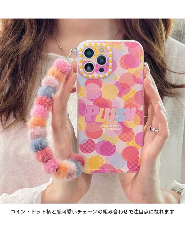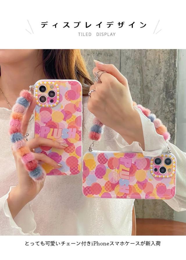 スマホケース iPhone13 チェーン付き ケース iPhone13Pro 落下防止 ドット柄 アイフォン iPhone13ProMax カバー iPhone12 TPU シリコン iPhone12Pro