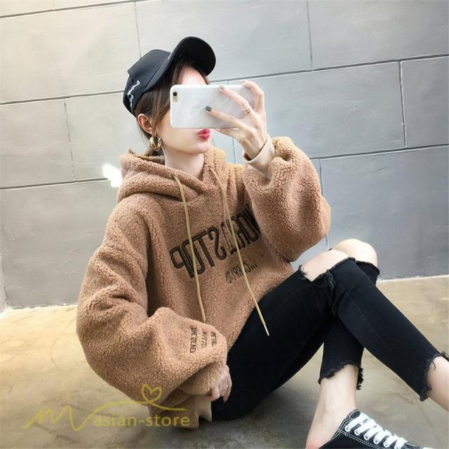 パーカー 裏起毛 レディース 保温 プルオーバー おしゃれ 上品 カジュアルパーカー 秋服 冬着 新作 ゆったり モコモコ 厚手 フード付き シンプル 大きいサイズ