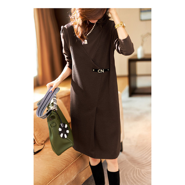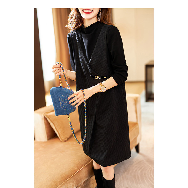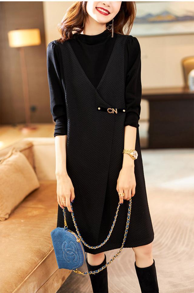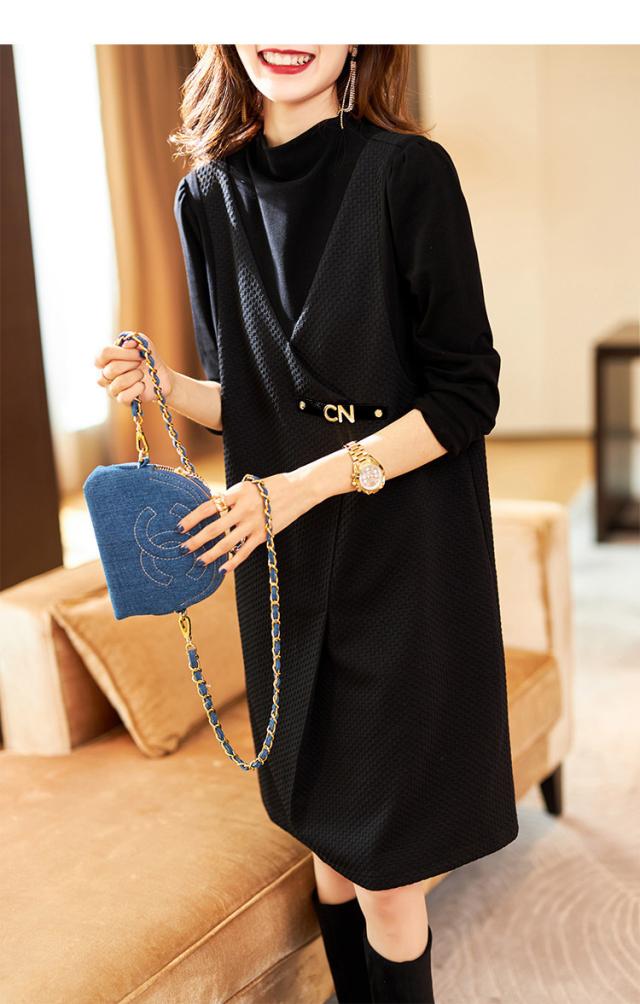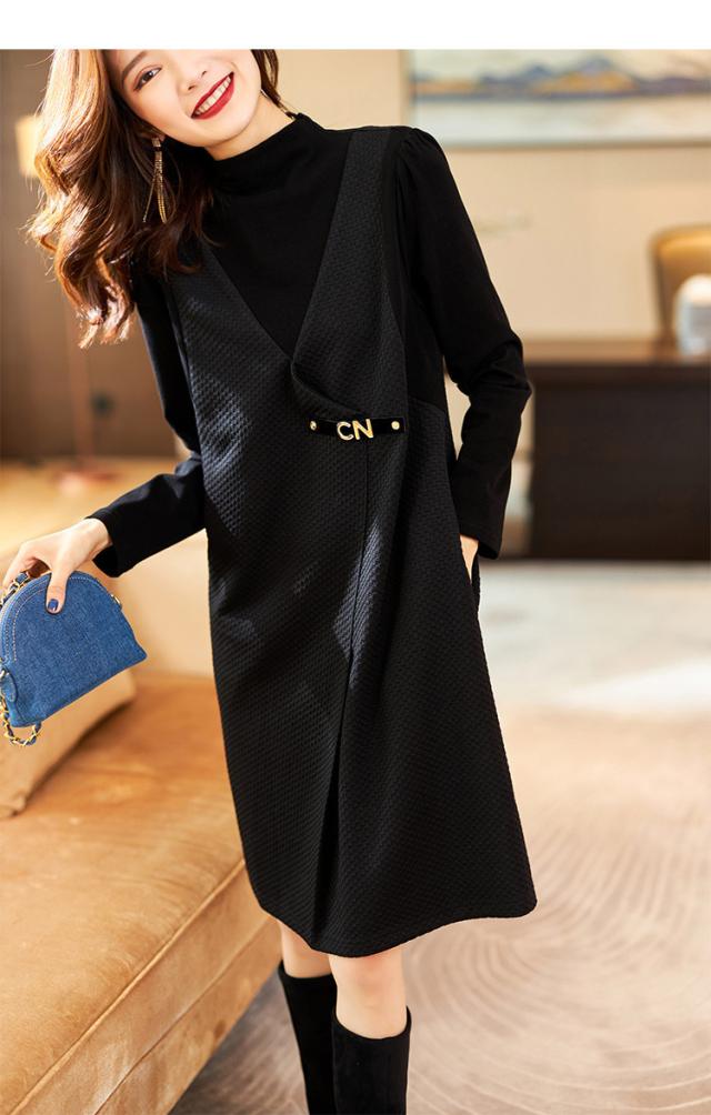 ニットワンピース レディース 40代 黒 ワンピース 切り替え 50代 おしゃれ 長袖 ワンピ 韓国風 結婚式