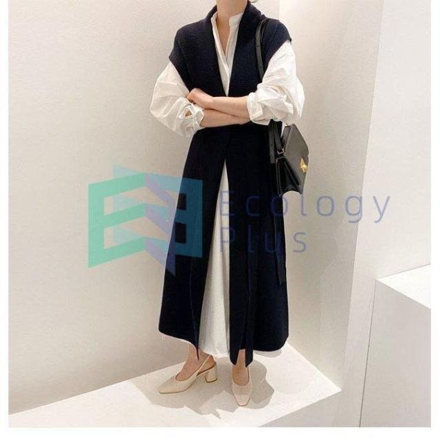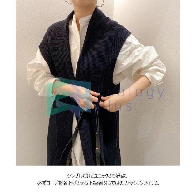 ロングジレ レディース ニット ジレベスト ロングベスト 前開き ニットベスト ベスト ロング丈 ジレ お洒落 チョッキ 秋 春 アウター 通勤