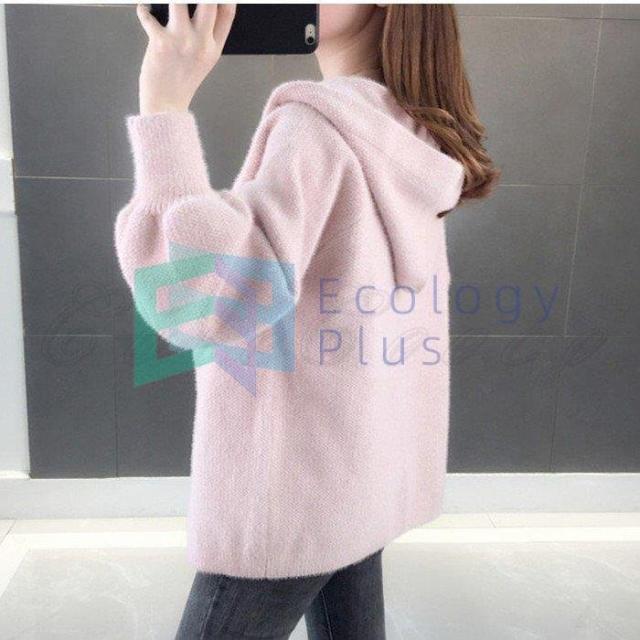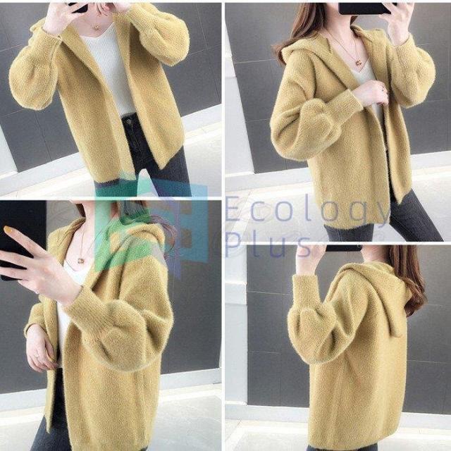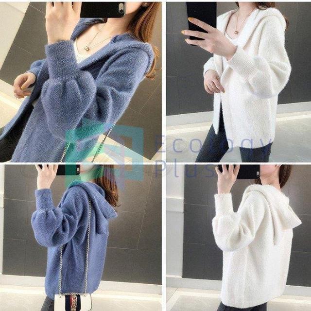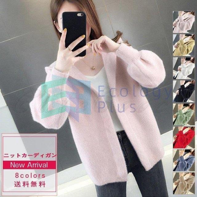 ニットカーディガン レディース 長袖 羽織 無地 もこもこ ふわふわ 厚手 ジャケット フード付き コート コーデ アウター きれいめ おしゃれ