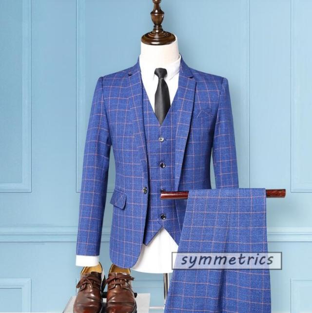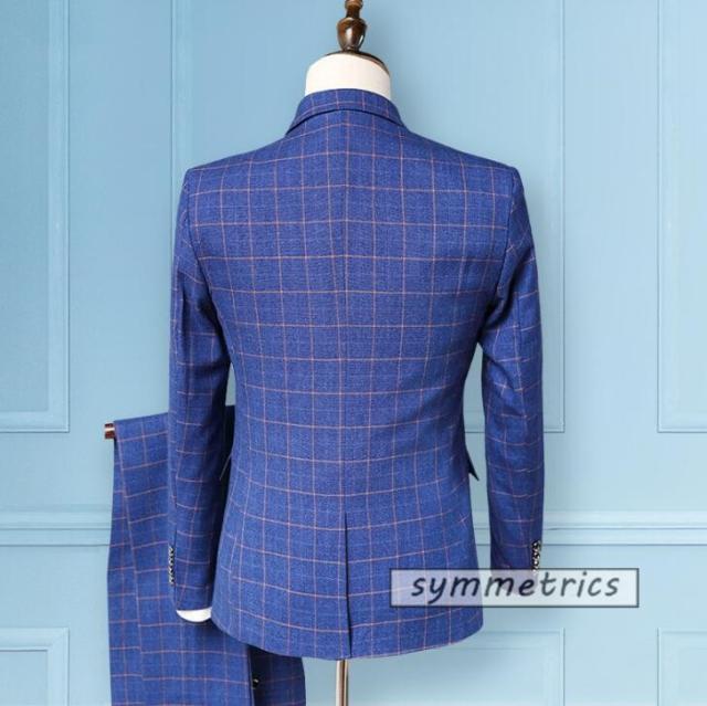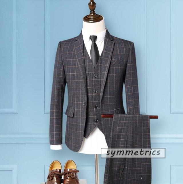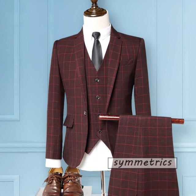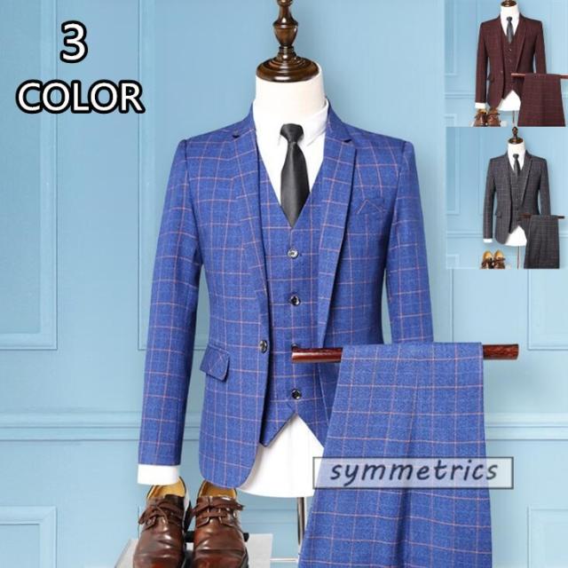 ビジネススーツ メンズ 3ピーススーツ スーツセット スリーピーススーツ ビジネス ベスト付き テーラードジャケット チェック柄 春 新作