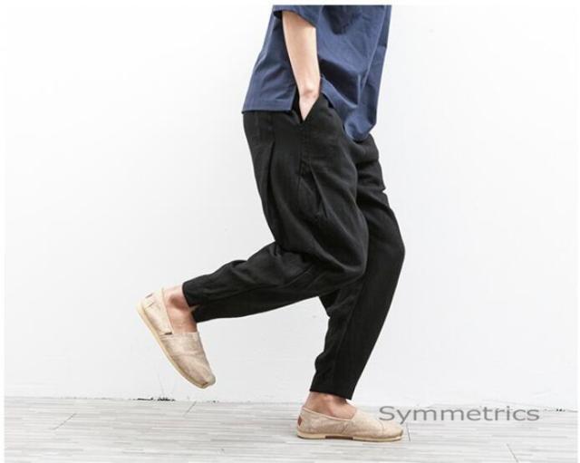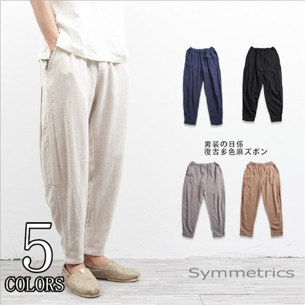 綿麻パンツ テーパードパンツ メンズ パンツ 無地 チャイナ風 イージーパンツ ボトムス 綿麻 2020 新作