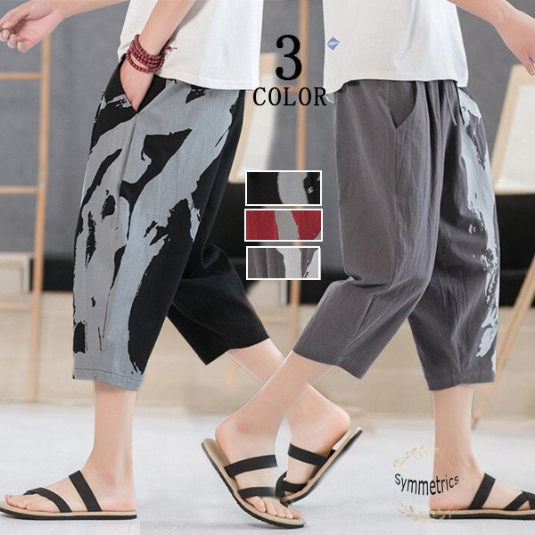 クロップドパンツ メンズ リネンパンツ 七分丈パンツ ゆったり 綿麻 麻ズボン イージーパンツ リネン 夏物 2021 新作 父の日