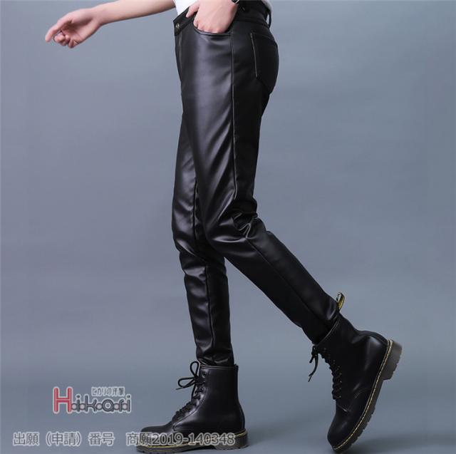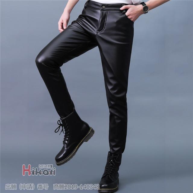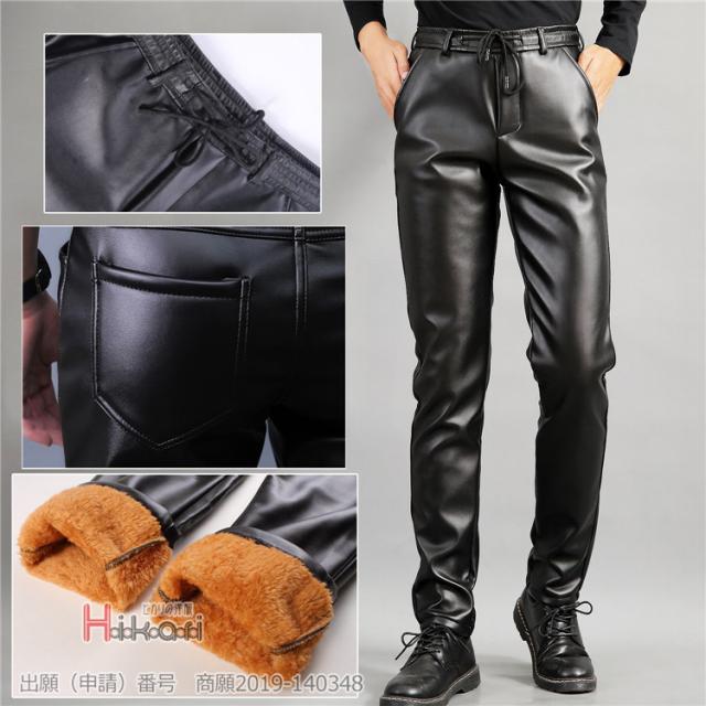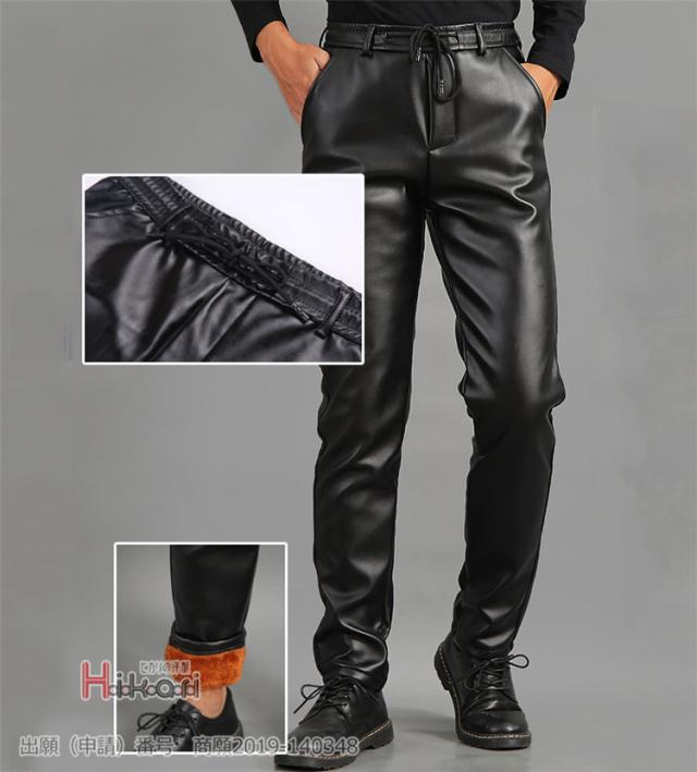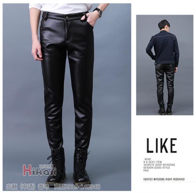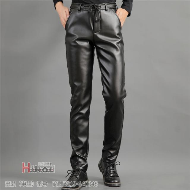 ライダースパンツ レザーパンツ メンズ 細身 スリム スキニーパンツ 薄手 裏起毛 フェイクレザー 秋冬 防寒