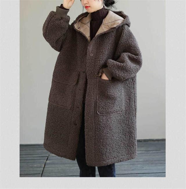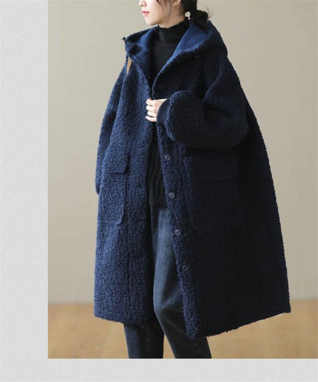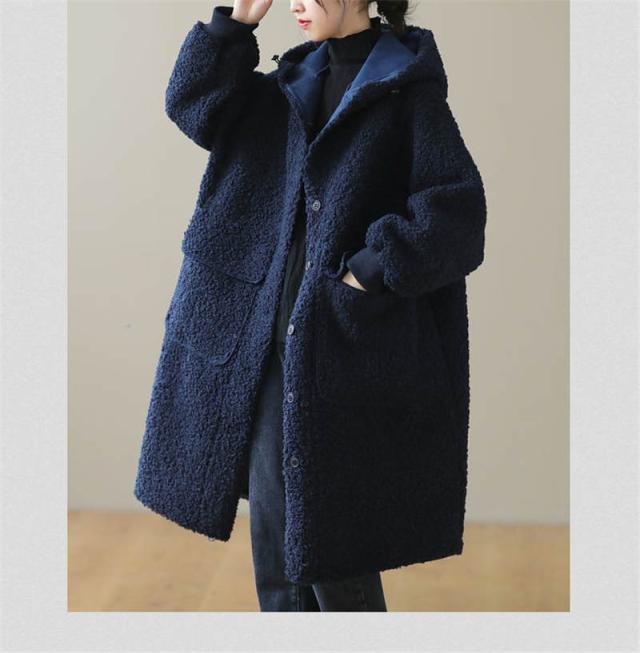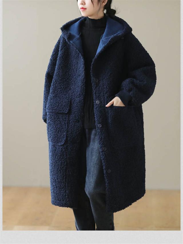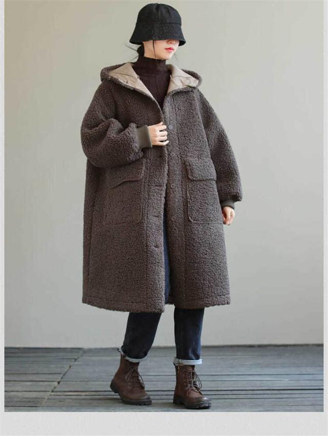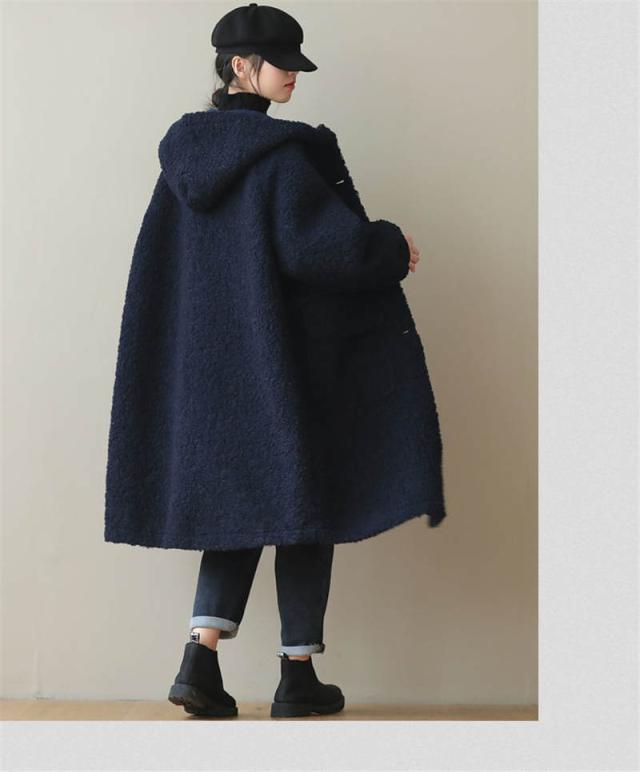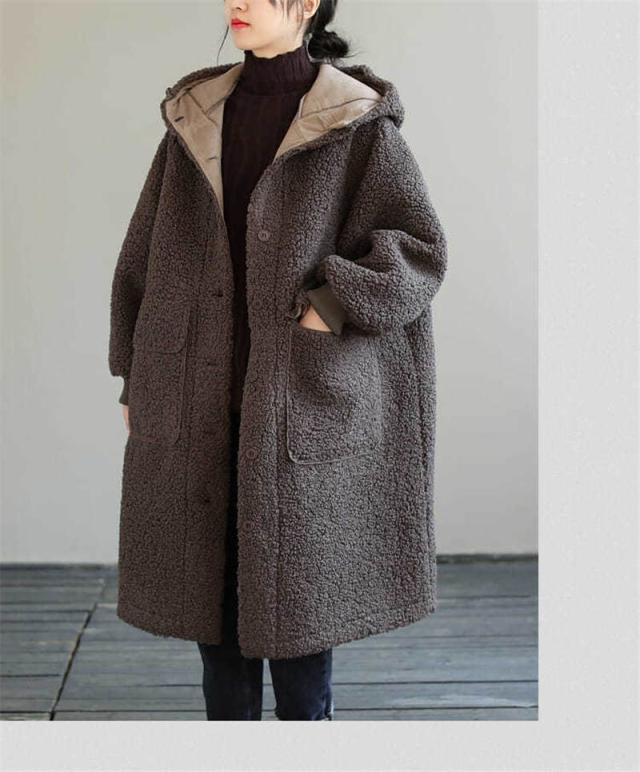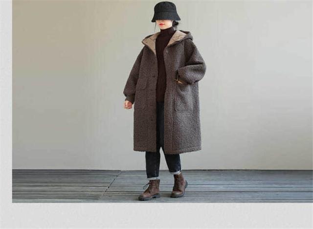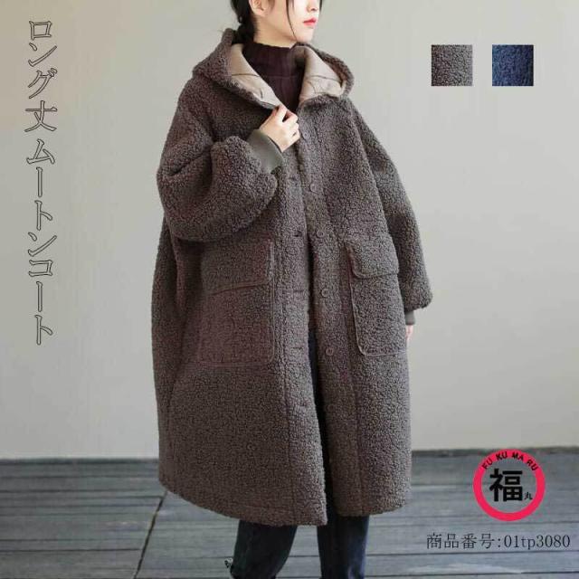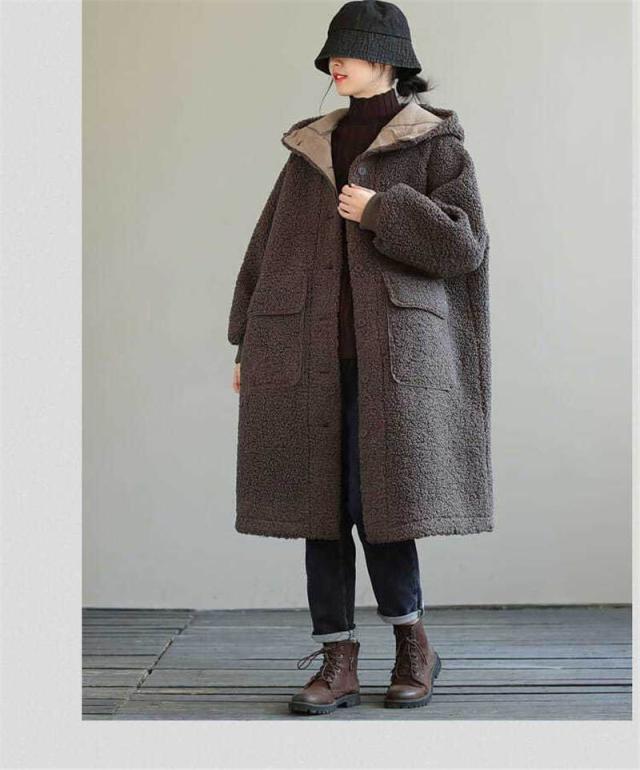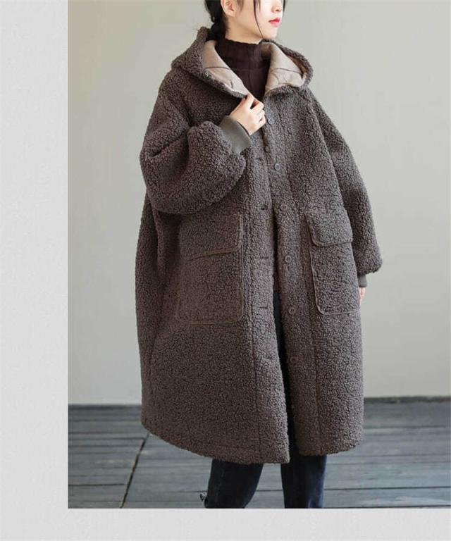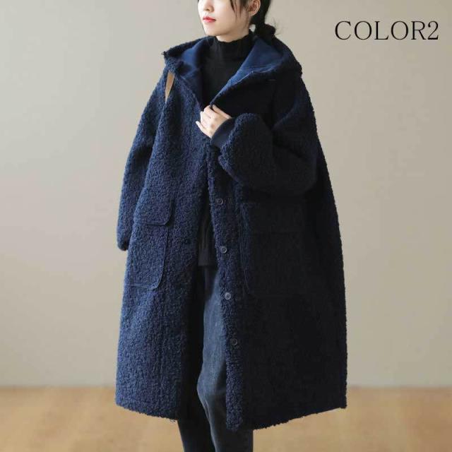 ロングコート ムートンコート アウター 無地 レディース トップス ロング丈 長袖 秋冬 防寒 ボタン留め フード付き 厚手 暖かい ゆったり オシャレ
