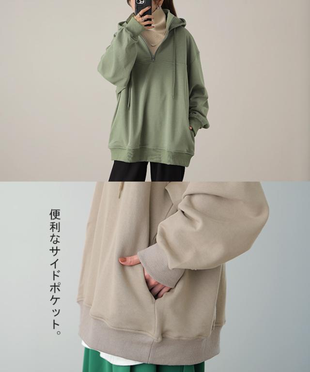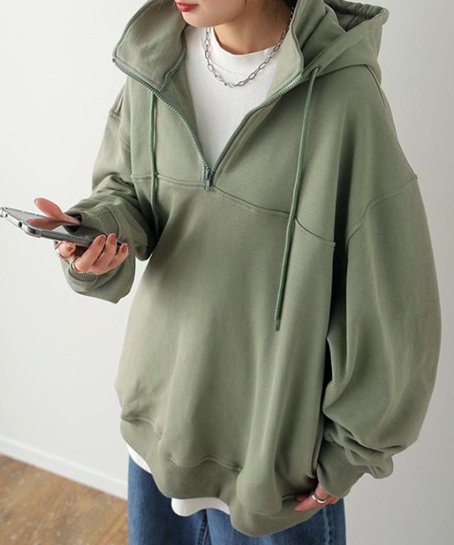 パーカー フーディー ハーフジップ 長袖 ジップ トップス Vネック ゆったり ゆる 大きめ 大きい ミドル丈 ボックス ボックスシルエット レイヤード 重ね着 リブ メンズライク ユニセックス ビック ビッグ ビッグシルエット ビックシルエット フーディ フード スウェット スエット レイヤードトップス ドロップショルダー オーバーシルエット オーバーサイズ レイヤードトップス ベーシック スタンダード カジュアル ストリート プルオーバー ロングスリーブ ロング袖 リブ袖 ポケット ポケット付き 無地 シンプル ゆったり ゆったりサイズ パイル パイル裏地 アウター ライトアウター スタンドネック ハイネック ボトルネック 小顔 カラバリ グレージュ ベージュ オリーブ グリーン ペールグリーン ピスタチオ ライトグリーン カーキ ブラック 緑 緑色 黄緑 黒 黒色 リモート リモートワーク テレワーク キャンプ アウトドア 着回し 母の日 プレゼント ギフト 贈り物 大人 大人カジュアル オトナ 女性 綺麗 きれい キレイ キレイめ 高見え 上質 部屋着 お尻が隠れる ルームウェア フリーサイズ フリー S M L LL 2L XL 3L XXL LLL プラスサイズ 20代 30代 40代 50代 おしゃれ 春夏 春 夏 秋 冬 秋冬 おしゃれ お洒落 オシャレ かわいい 可愛い カワイイ クリスマス HUG.U HUGU ハグユー はぐゆー