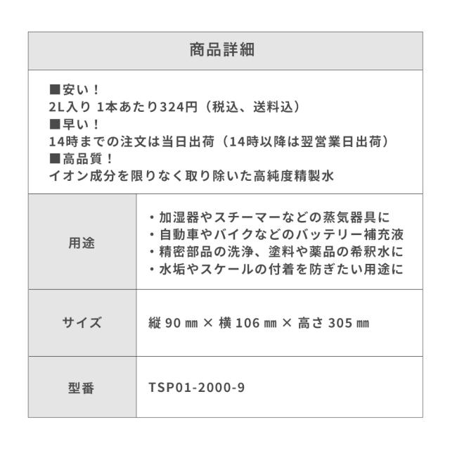 サンエイ化学 工業用精製水 2L×9本 の特長と主な用途